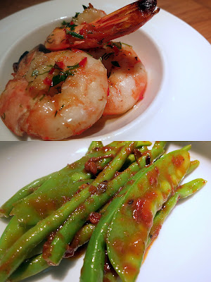 For something faintly fiery: grilled tiger prawns with chili-herb salsa and a sambal salad containing French beans and snow peas.