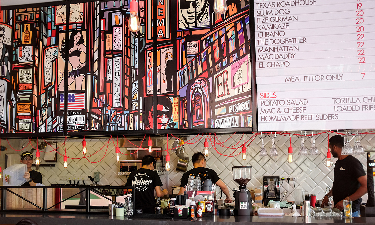 Weiner, a relatively small & intimate space that aims to channel the bustling, colourful exuberance of an NYC diner, is actually part of Da:Men's most intriguing family of restaurants, spearheaded by the people behind Singapore's Sarnies cafe. So far, they've unveiled Weiner as well as The Big Cheese (specialising in grilled cheese sandwiches) in this mall; by October, a joint for meatball enthusiasts called PMB (Pimp My Balls) is scheduled to launch here, alongside the very first Malaysian Sarnies.