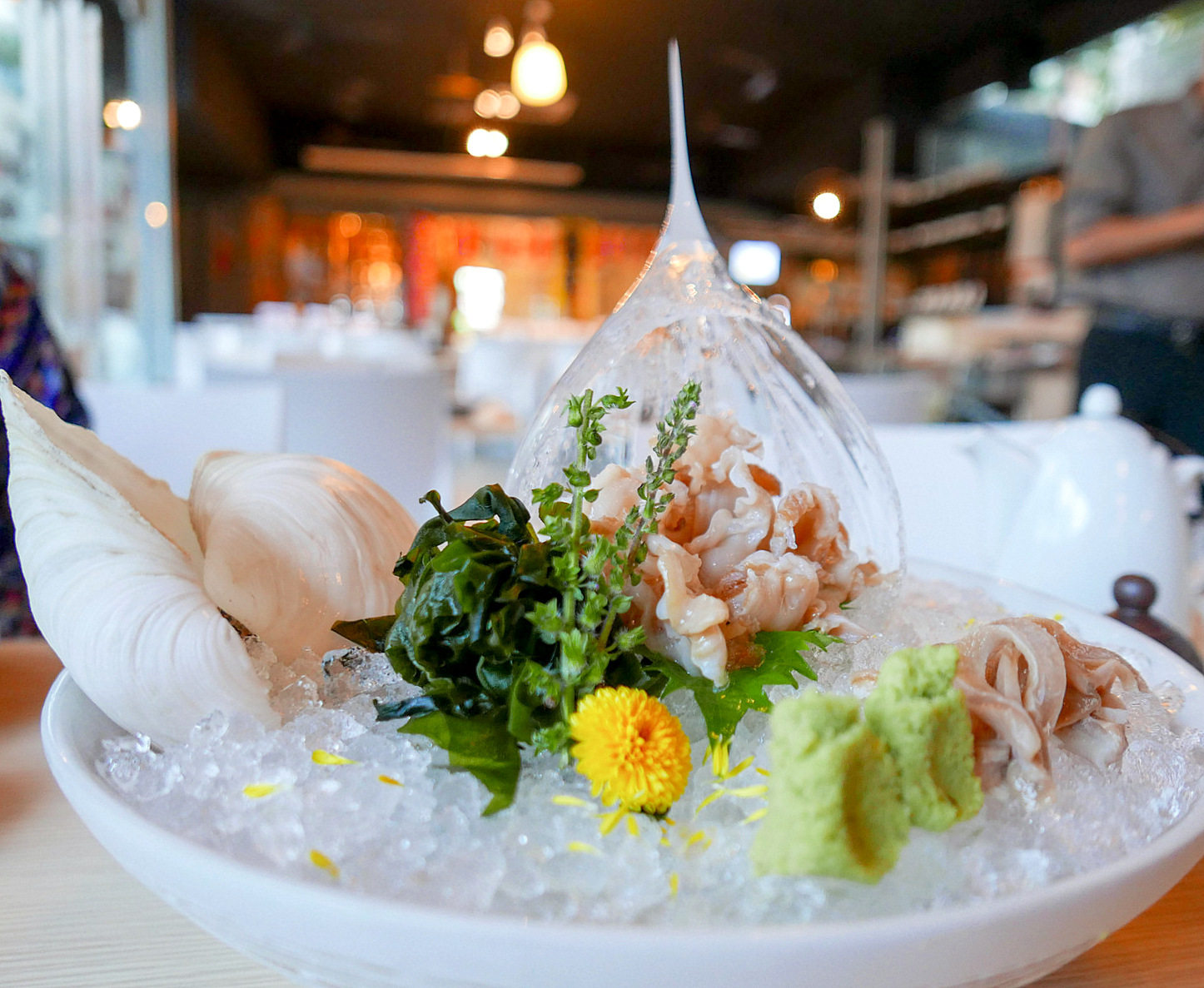 For a wave of visual enchantment, the geoduck sashimi (RM27++ per 100 grammes) is presented in a pointed ice sculpture - simple but elegant. The clam flesh is mildly briny, furnishing a crisp, plucky chew, making it likely an acquired taste for some.