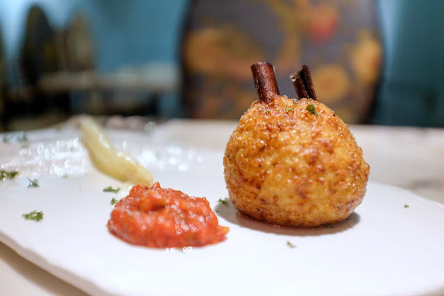 White asparagus seizes the spotlight for the final course - enjoy it either with Japanese turnips & shishito peppers or with what's described as a 'tree knuckle,' which turns out to be a vegetarian fritter to fittingly cap a dinner with surprising twists.