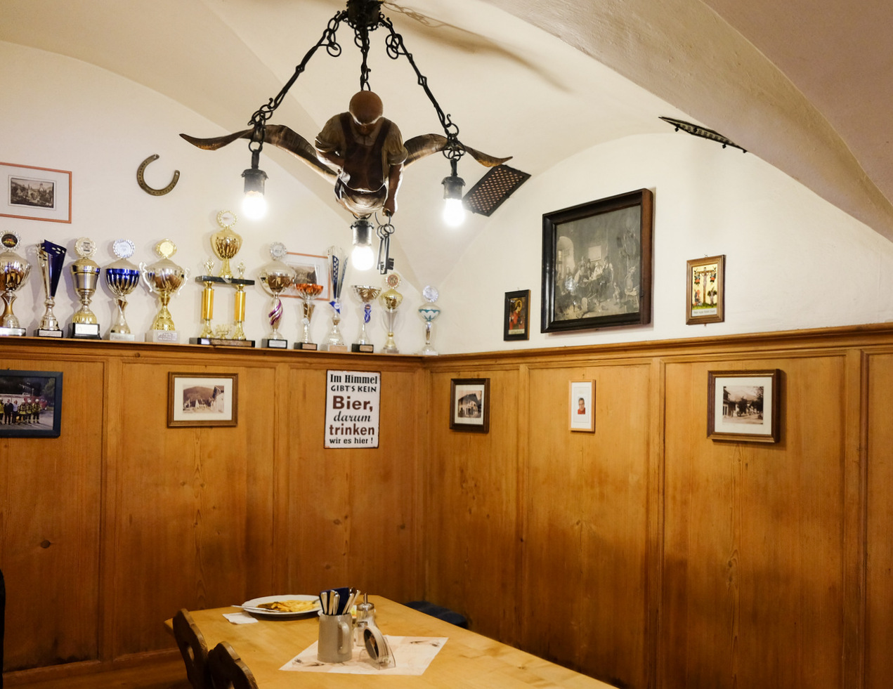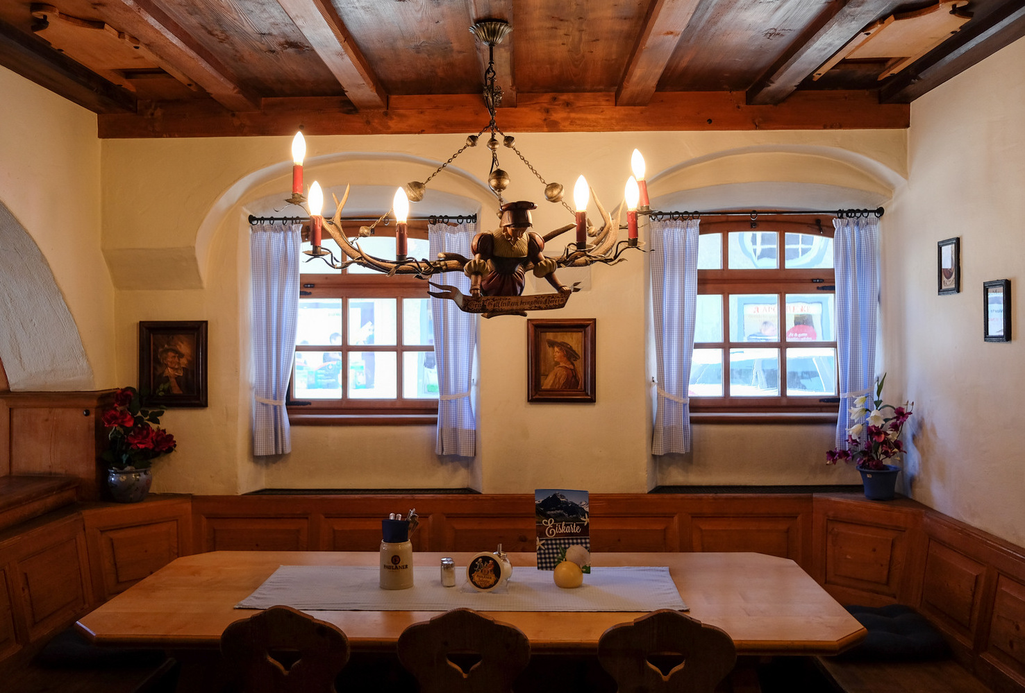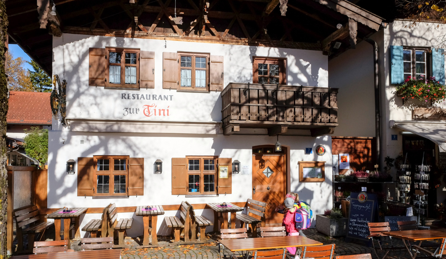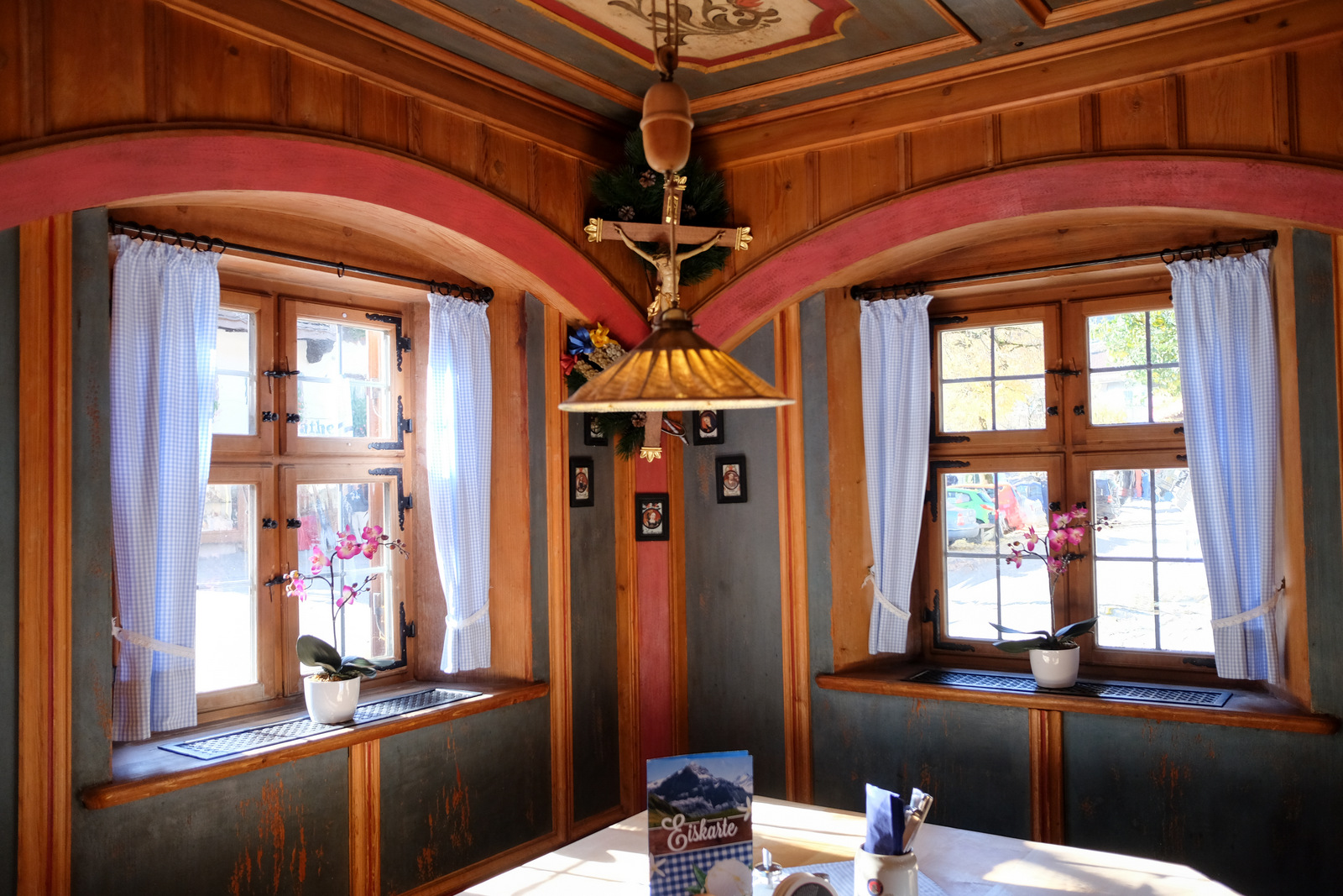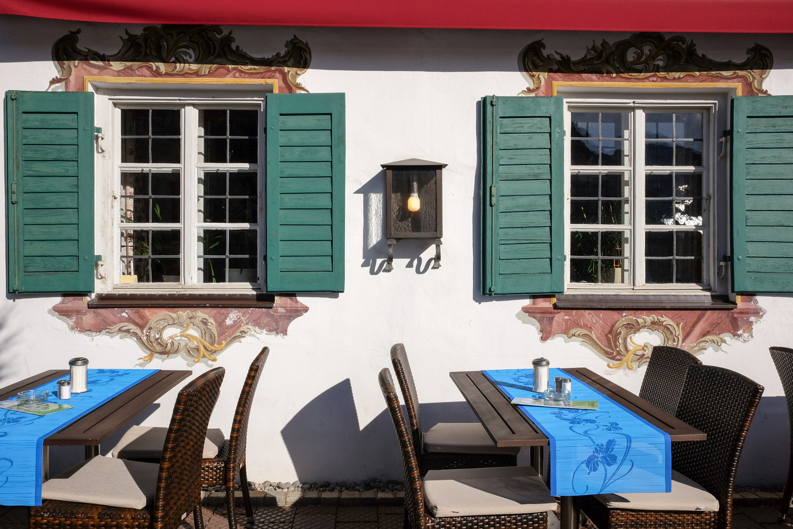 Oberammergau is a charming Bavarian town, known for its fairy tale frescoes, woodcarvers and Passion Play productions. Even the eateries demonstrate artistic flourishes, both within and without. If you're here in the afternoon, the country-style leberkase - essentially a browned pink meatloaf made of beef and pork - at Zur Tini makes for a satisfactory lunch.