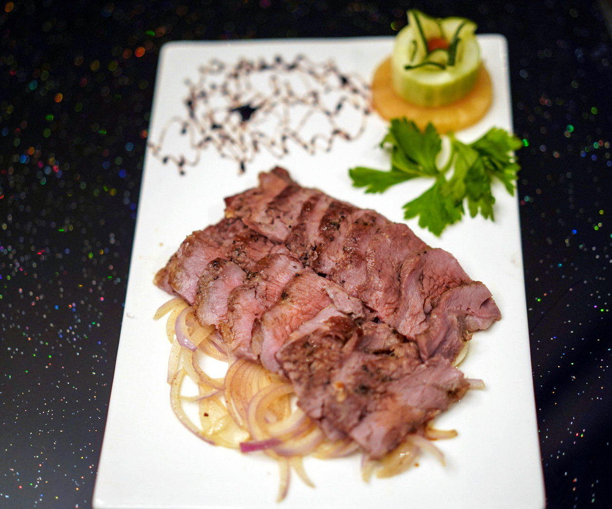 Pan-seared ostrich meat with black pepper cream sauce is served in a humorous style, with a side of vegetables spilling forth from an empty wine glass. Pork is also a solid order, ranging from the classic crowd favourite of braised belly meat to Spanish iberico pork that promises the meat at its purest.