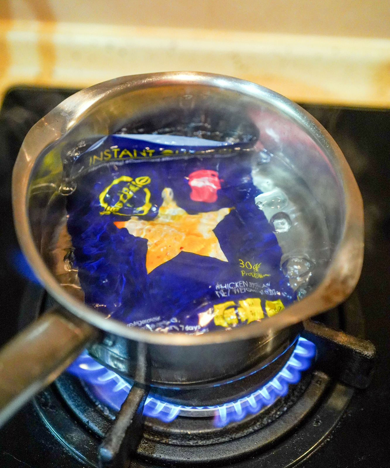 You can submerge the pack in boiling water for 90 seconds. Or you can cut a corner of the packaging, pop it in the microwave, and heat it up for one minute.