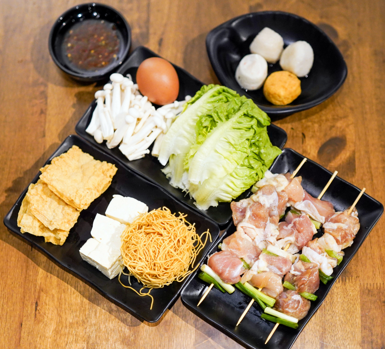 Each set is easily sufficient for one person, comprising both hot pot and barbecue components. It comes with fu chuk, fish ball, tofu cheese fish ball, egg, mushroom, lettuce and your choice of yee mee or steamed white rice, mostly meant to be cooked in the hot pot. The sets represent solid value, promising plenty of variety in your lunch or dinner.