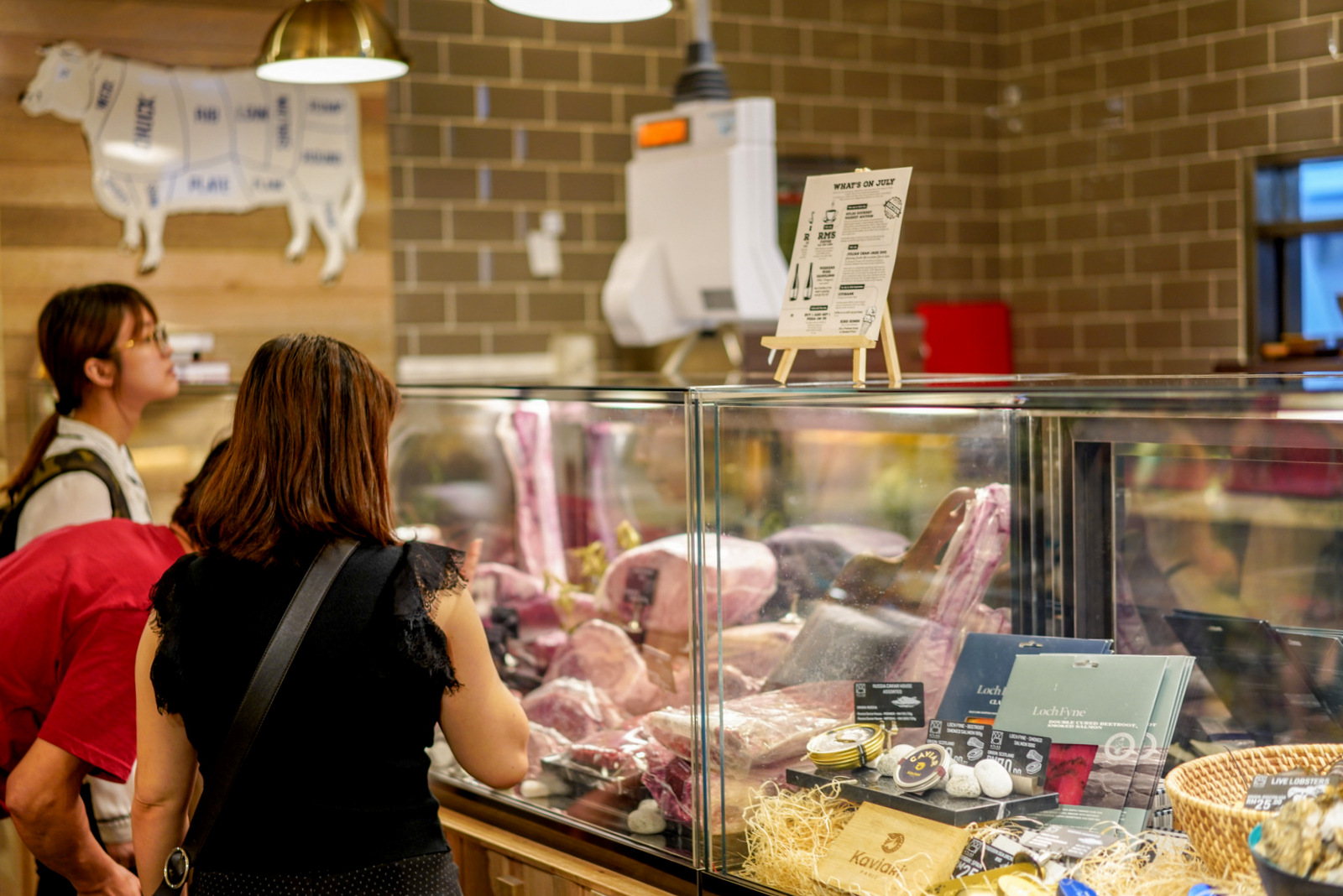 Slabs of Sanchoku wagyu strip loins and Margaret River tomahawk steaks beckon seductively from the butchers' chiller, lustrous and luscious in their mouthwatering marbling. Black cod and trout fillets glisten nearby, swept in with the ocean's opulence of Brittany blue lobsters and Irish Gallagher oysters. A few feet away, the earth's crops look ready for harvest, with shelves of vegetables that span Cameron Highlands cabbage and zucchini to Australian broccoli and Dutch white asparagus.