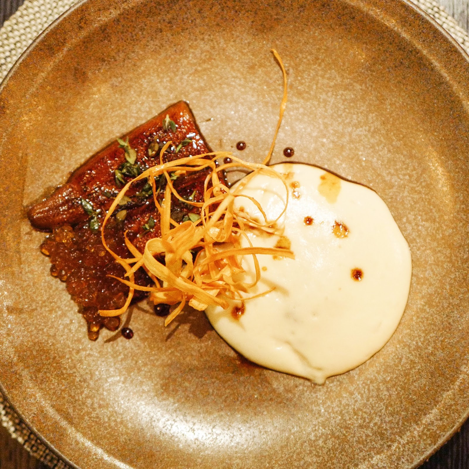 The unagi with sunchoke mousse, vanilla and thyme caviar pearls and burdock root needs no mind-bending sleights of hand though - it's terrific, eel prepared to the pinnacle of pleasure, brandishing all its sublime subtleties.