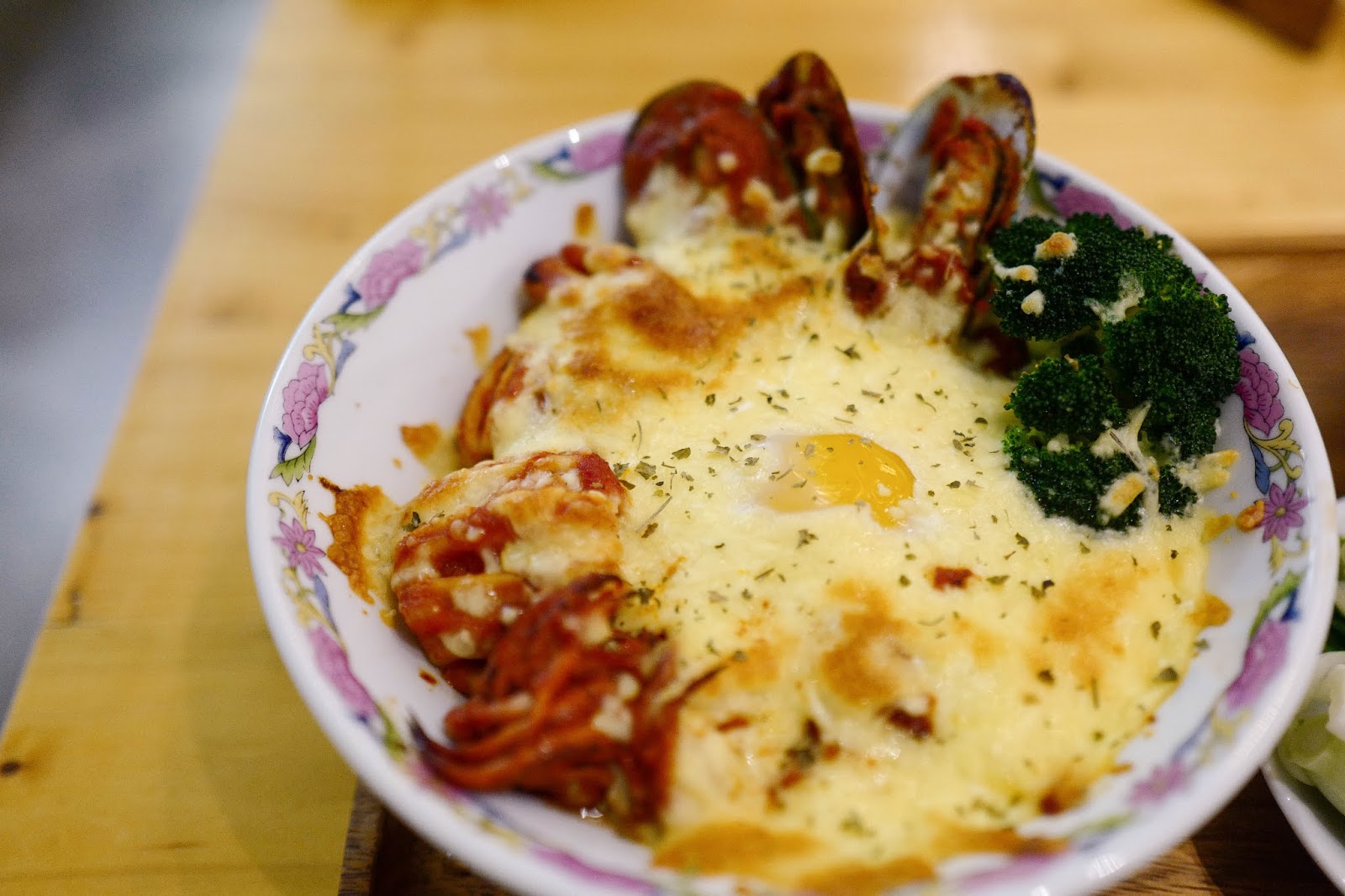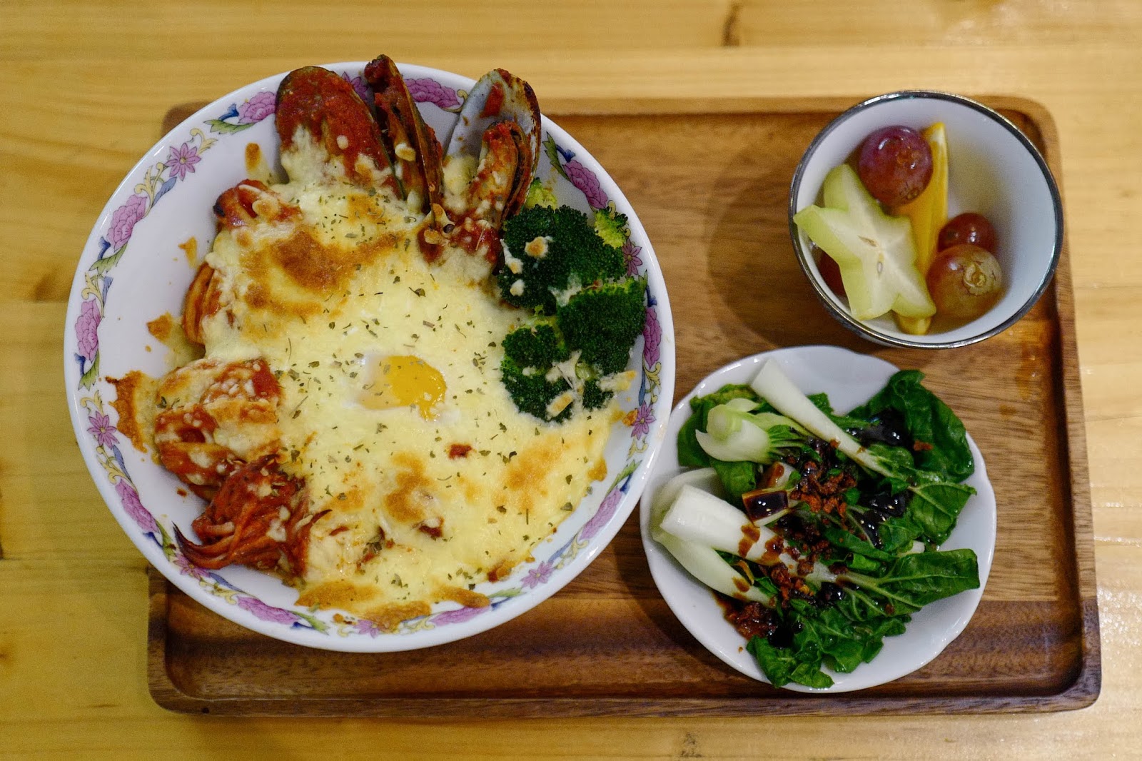 The kitchen is equally and enticingly playful with its cooking. Seafood baked rice, laden with mussels and more beneath a thick blanket of rich, stretchy cheese centred with a runny egg yolk, is served steaming-hot, comfort fare completed with vegetables and fruits for a very addictive, verifiably balanced lunch (RM25).