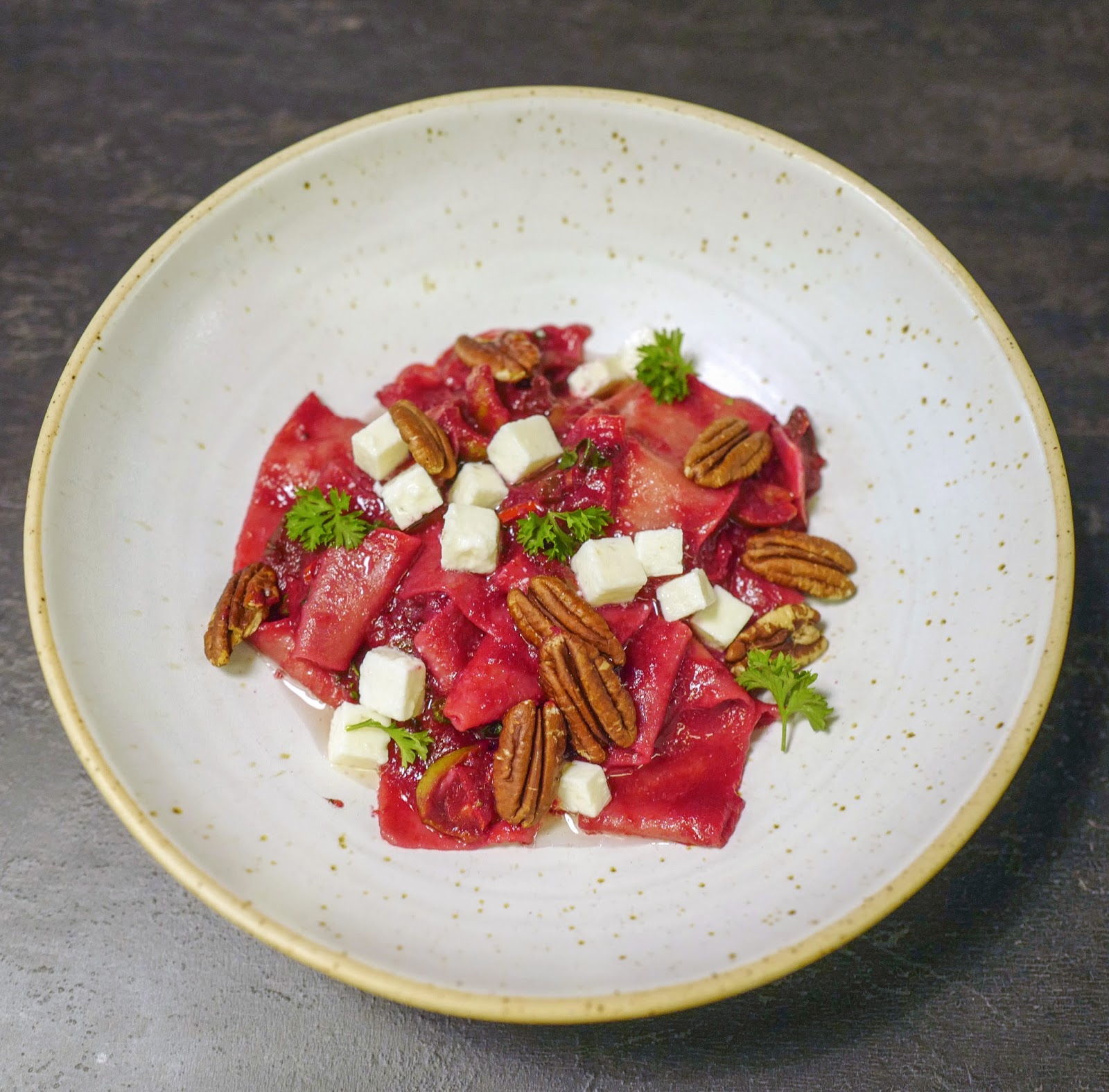 The Pappardelle Rosse is memorable in its own striking way too, with the broad pasta coated in a flavourful, deep-red beetroot pesto, tossed with feta cheese and Kalamata olives, generously showered with pecans for lots of extra texture (RM 32).
