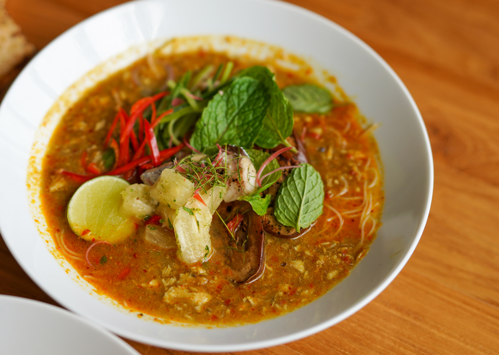 Asian noodle recipes prove soulful and comforting here. Organic brown rice bee hoon is available as the Kerabu Mihoen (RM9.90; packed with local herbs, toasted nuts, dried shrimp, shredded omelette, and a dressing of lime and lemon) and the Siam Laksa (RM13.90; an absolute should-try, with a rustically textured kuah of mackerel fish with budu and fish stock, plus pineapple salsa and vegetables).