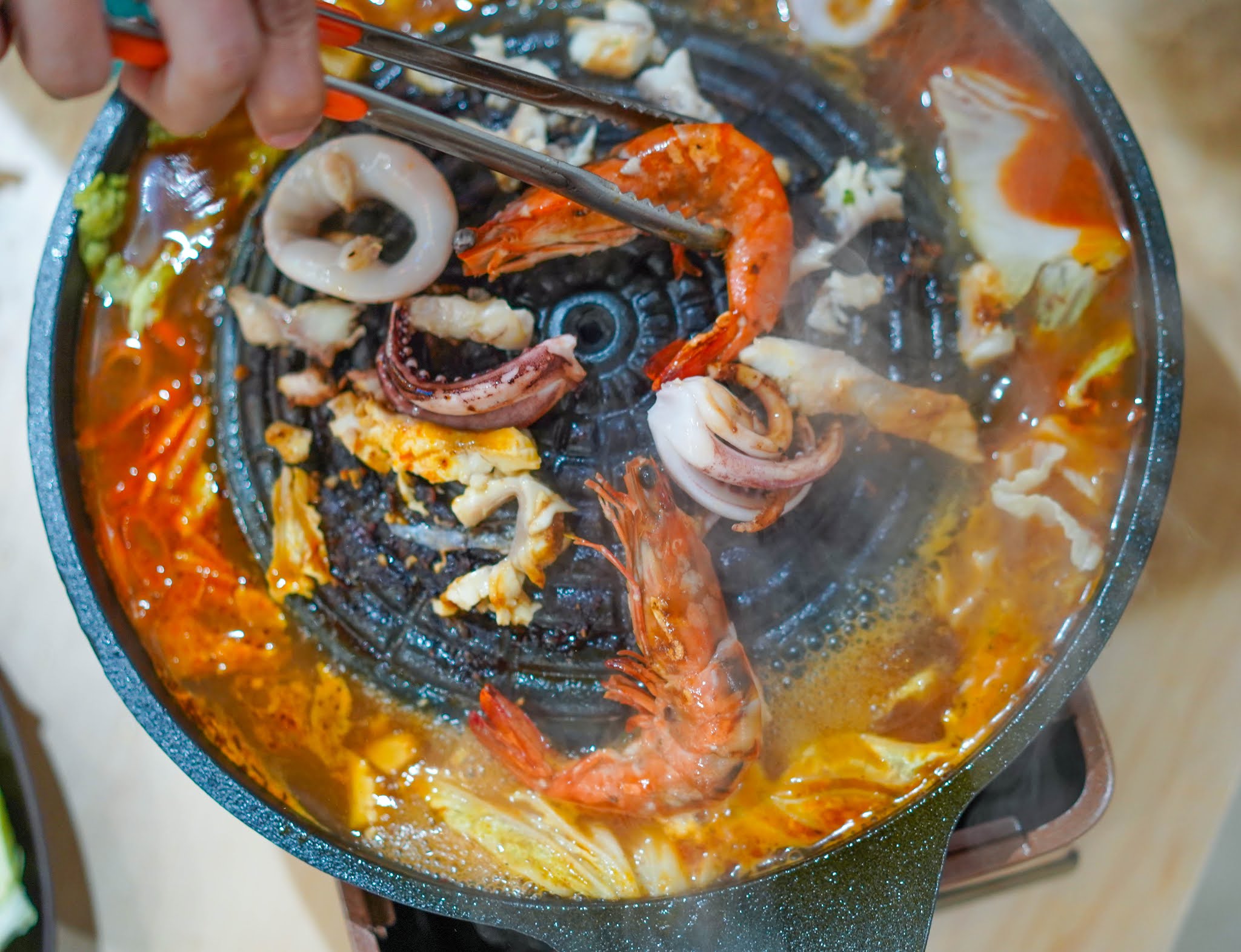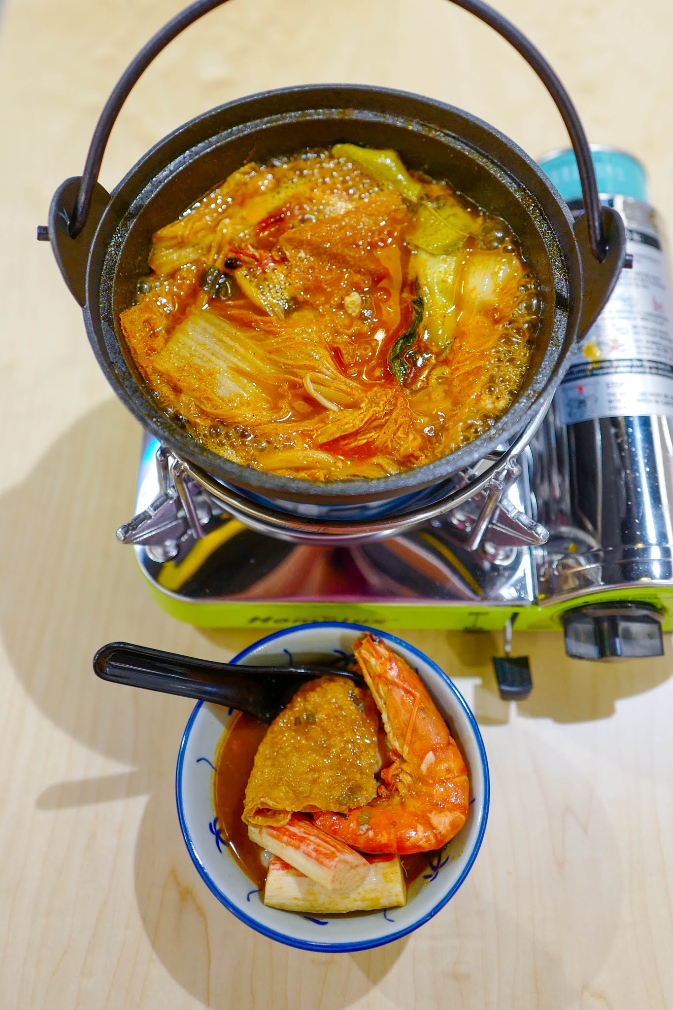 Each Jim Jum set costs RM16.90, inclusive of the soup, vegetables, and rice or beehoon. Of course, you can add on as much meat and seafood as you want - a plate of chicken costs RM5.90, beef is RM7.90, and an assortment of seafood is RM15.90. Individual add-ons of prawns, squid, fish slices, jellyfish, fish balls, crab sticks, foo chuk and tau foo are also available.