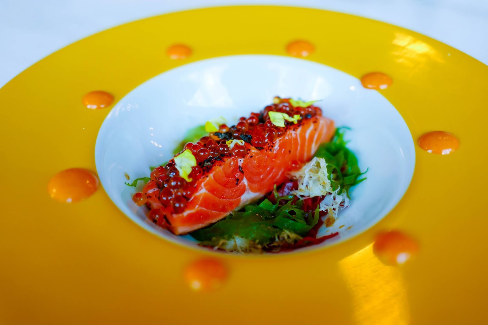 Plenty of playfully intriguing recipes - the Hanatei X Style Salmon Rare Steak is a should-try too, a plump. fleshy slab of sashimi-grade salmon that's a sumptuous treat, studded with ikura (RM35), as is the Ama Ebi Nigiri, doubly topped with whole, head-on shrimp, tasting fresh and naturally sweet (RM14 per piece).