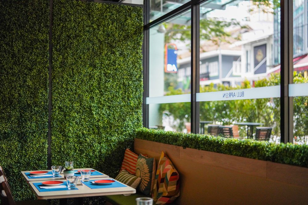 Blu Apron is a red-hot, green-hued entry to Bukit Ceylon - spearheaded by Malaysian F&B veterans with warmth, wit and wisdom, it's a lovely space to spend an evening, feasting on thoughtful temptations under an artificial ficus tree.