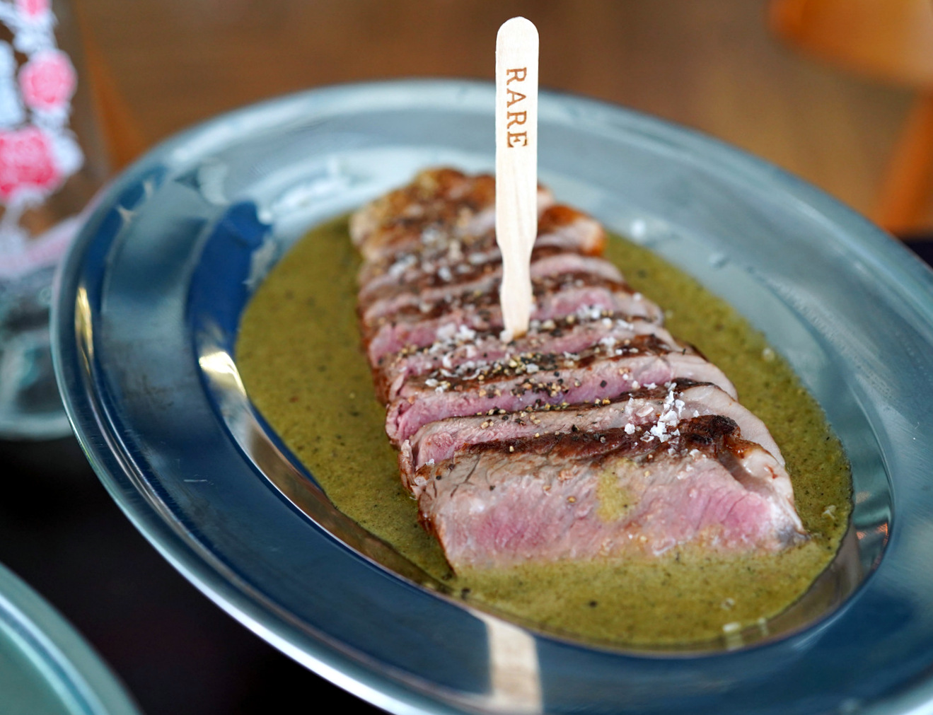 Grilled Australian grain-fed beef striploins are the cornerstone of the menu, served in 180-gram portions according to your specific preference that you can tick while ordering on the one-page paper menu (rare, medium-rare, medium, medium-well or well-done), rounded out with Léon's signature sauce, house-made French fries and a green salad.