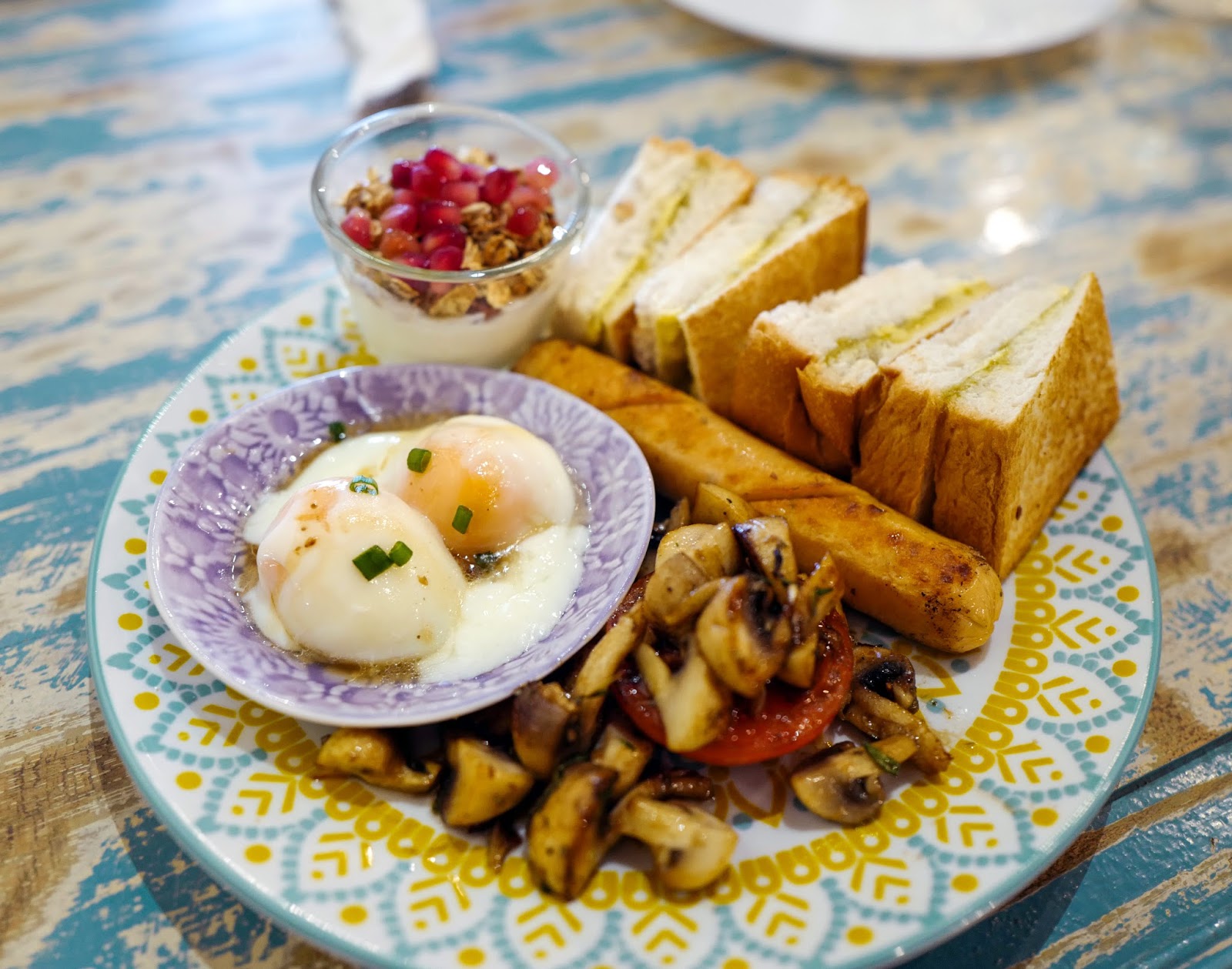 At first glance, the supremely hearty Big Breakfast might look like a safe, familiar sight, but it manages to bring a few surprises to the plate too, combining a jumbo chicken cheese sausage with (deep breath!) roasted field mushrooms, confit tomatoes and house-made yogurt with granola, plus a poached egg with shoyu dressing and pandan butter toast (RM25). If you're starving, this should be your order.