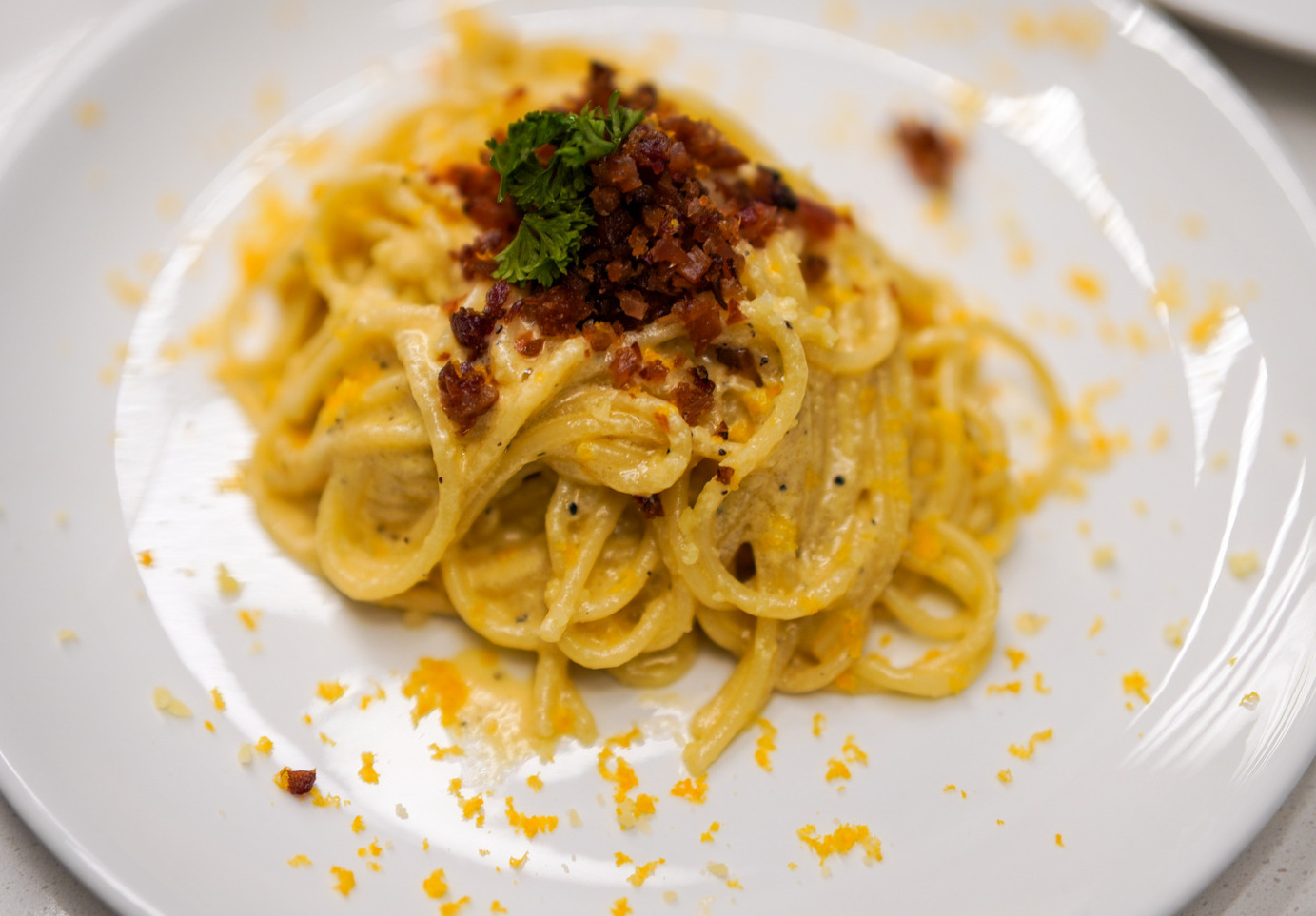 The spaghetti carbonara also hits harmonious notes, with just a touch of cream for the irreproachably al dente pasta, rich with emulsified kampung egg yolk and extra virgin olive oil, drizzled with crispy bacon, simple but satisfyingly executed (RM28).