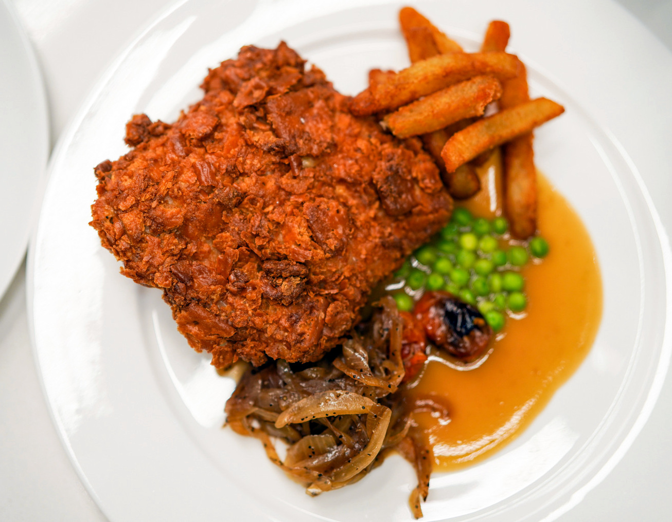 Nothing comes out exactly as expected at Cafe Rocco, a treat for patrons who enjoy exploring how a talented chef takes liberties with familiar recipes. The Hainanese chicken chop abandons any attempt of drowning the fowl with gluggy gravy but reasserts the practice of coating the whole thigh with crunchy, buttery cream crackers for its crumb, partnered with baby peas, caramelised onions and hand-cut, twice-fried Russet potato chips, restoring respect to this classic chop (RM28).