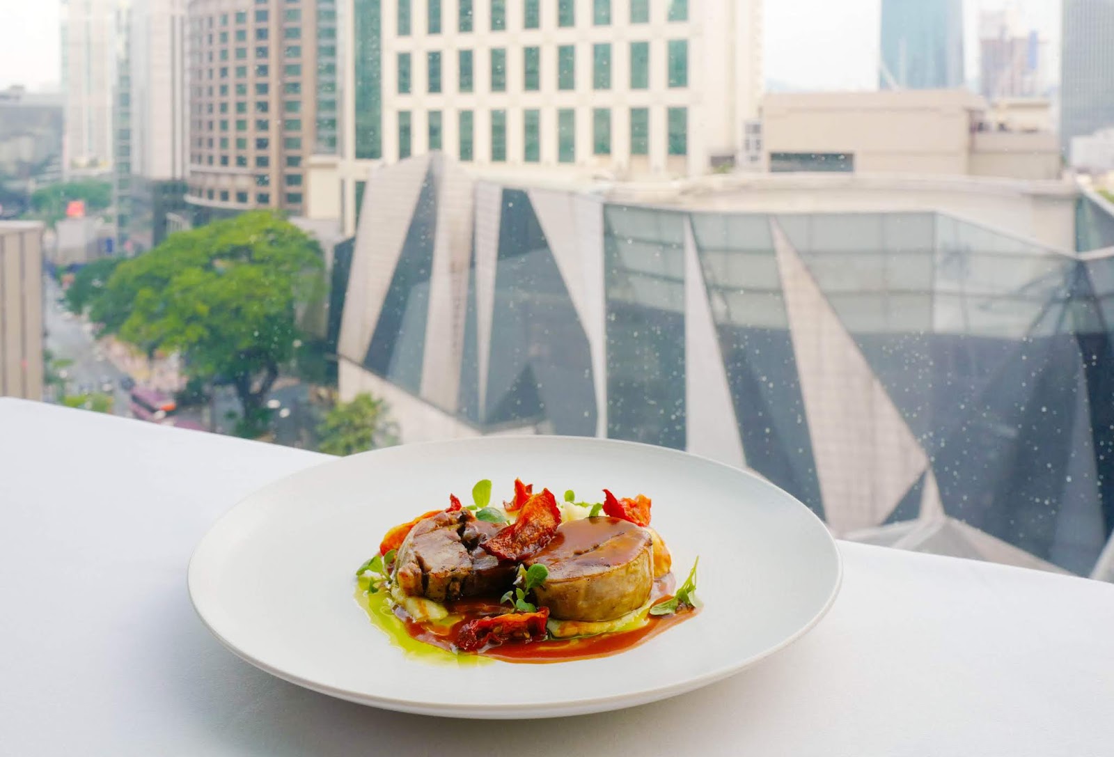 For dessert, the can't-fail order is the chocolate ganache, indulgently nuanced in its complexities, buoyed by mint sauce and fresh fruits (RM22). If the night is still young by the time dinner is over, adjourn to the adjacent lounge beside the dining room, keeping the spirits high with more panoramic views and drinks galore.