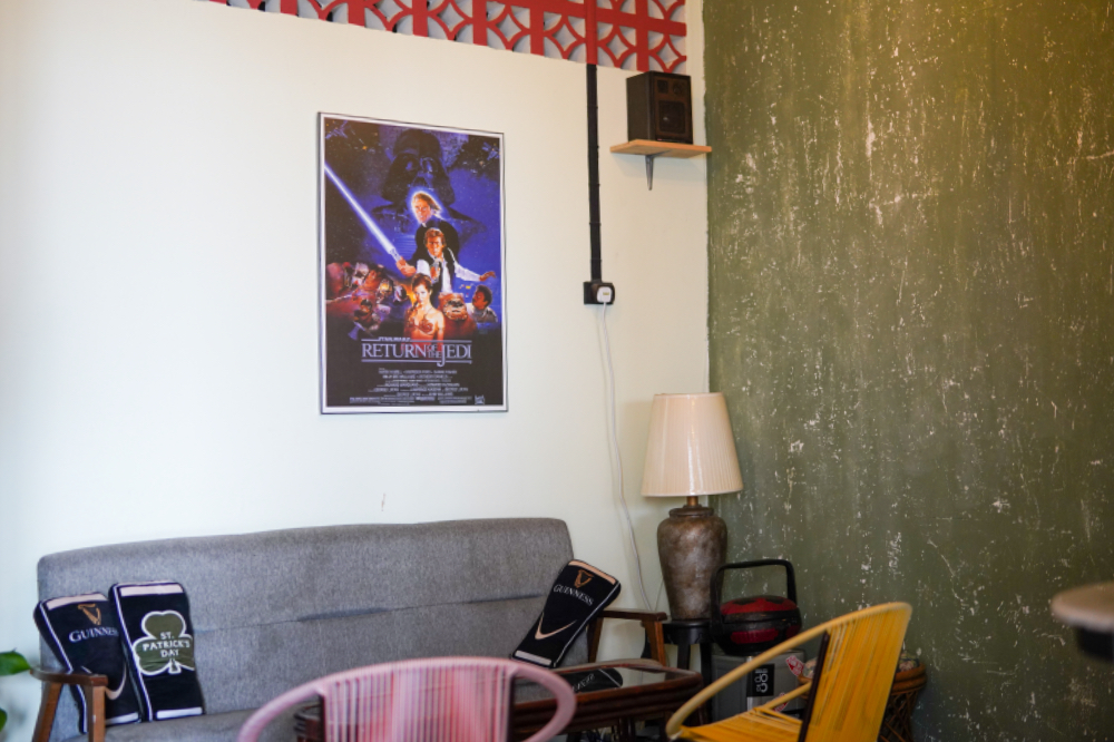 Sea Park's intriguingly evocative new eatery will be a magnet for fans of hidden spaces, tucked behind locked doors on the residential level of a PJ shop-house. Walking into CUE@27 is a step back in time, with the Eurythmics and Milli Vanilli, John Farnham and Paul Young blasting on the speakers in a converted home fixed up with a Return of the Jedi poster, CRT TV, VHS tapes and other artefacts from long-lost decades.