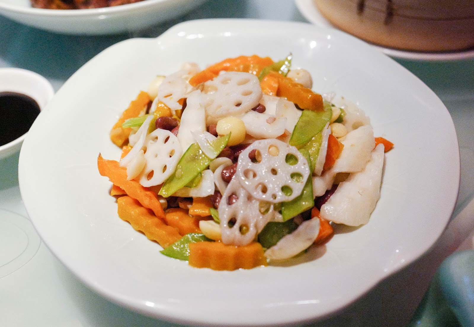 Customers can choose from an intriguing variety of duck dishes for the third course: Deep-fried Duck's Bone with Salt and Pepper, Stir-fried Duck's Bone in Hunan Style, Braised Rice Noodle with Black Truffle and Shredded Duck Meat, or Stir-fried Shredded Duck Meat with Vegetarian Shark's Fin. We opted for the Stir-Fried Duck Bones, Hunan-style, tossed with lotus roots and vibrant peppers, packing a lovely level of heat and saucy aroma.