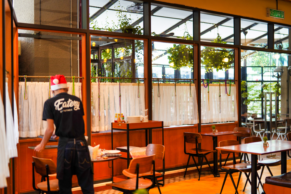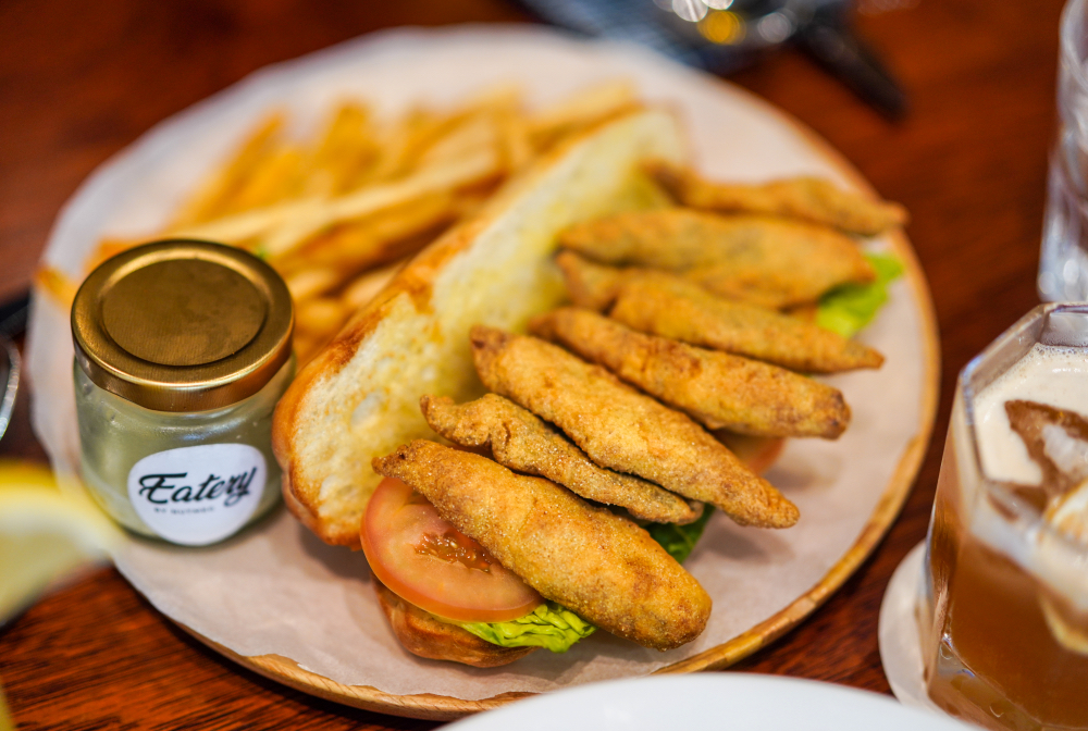 Eatery's fried catfish fillets are lovely, served hot and crisp in the cornmeal-crusted style of the south, moist and fresh-tasting within, served with tangy tartar sauce in a house-baked baguette, alongside fries on the side for a very fair price of RM18.