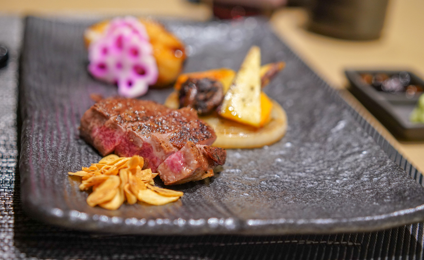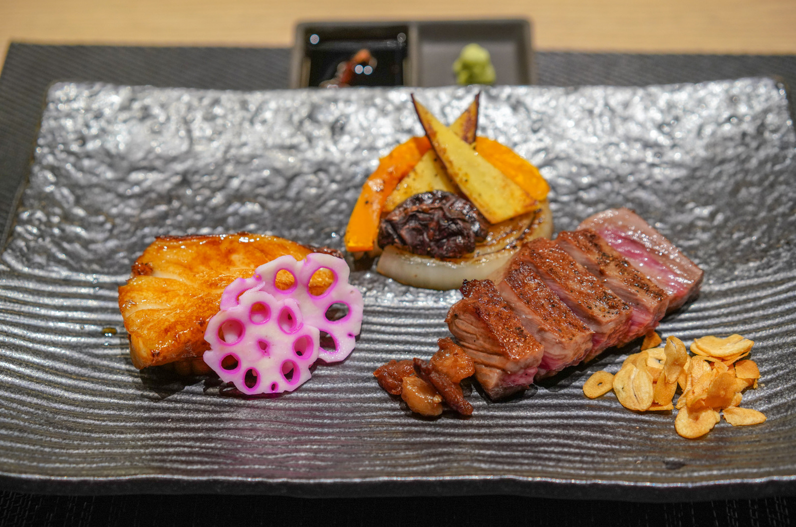 Bringing together produce from the land and the waters, the teppan platter is a triumph of taste and texture - Japanese-bred A5 wagyu beef, sumptuous and succulent, with black cod, buttery and velvety, perfectly cooked to preserve their prized characteristics. Even a seemingly simple chawanmushi is immaculate, its eggy richness enhanced with briny bursts of ikura.