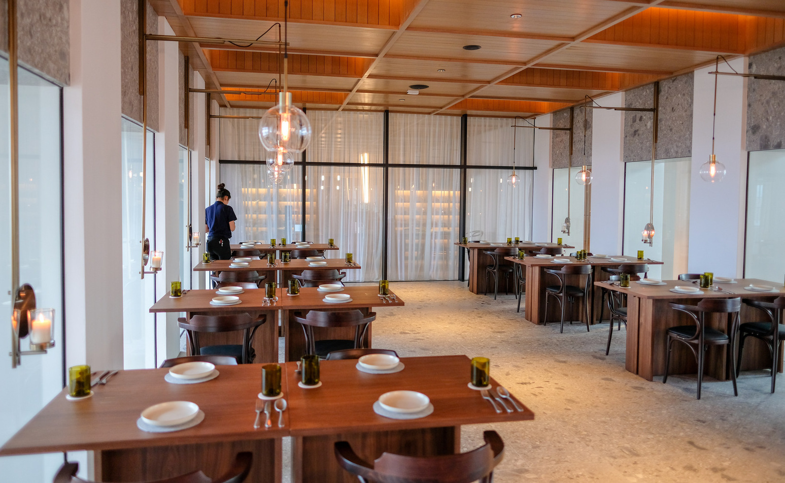 First impressions of Entier prove entirely positive: The space balances starkness with sleekness for a spacious sense of sophistication, setting the tone for a comfortable evening of lingering (take a table by the window for extra privacy and a soaring view). Service is earnest, with the young team seeming very eager to satisfy. Strains of Un Beau Roman strike a soothing musical note.