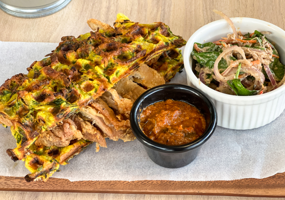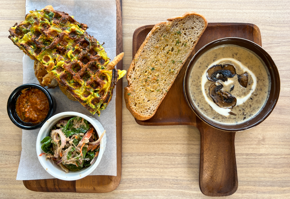 Farm Cafe pays cheeky tribute to MasterChef UK judge Gregg Wallace with Gregg's Crispy Rendang (RM28.50), which packs a crunch with fried chicken sandwiched with rendang sauce in a turmeric-tinged waffle that evokes pakora fritters, laced with spinach and curry leaves, plus extra rendang on the side and an umami-rich banana blossom micro-herb salad. It's a fun ensemble that's full of rich, robust flavours.