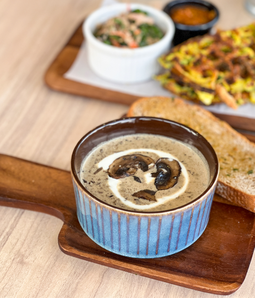 Crispy chicken rendang and mushroom soup with buah kulim are among the playful temptations at Farm Cafe, a lovely space for soul food with fresh local flourishes.