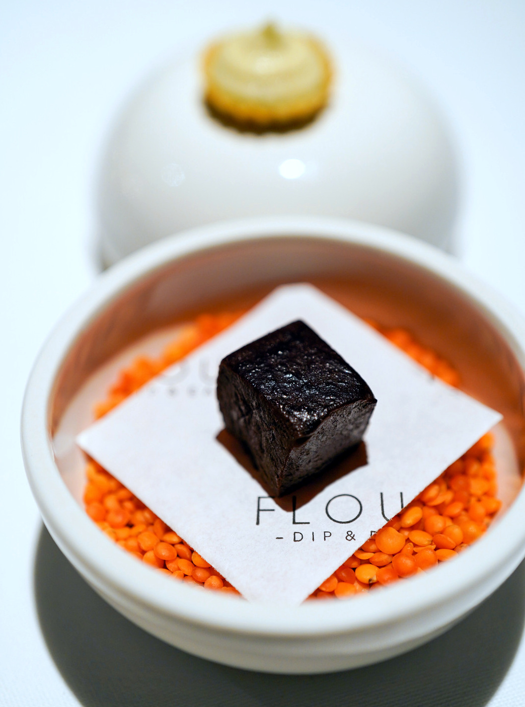FLOUR gets its ducks in a row for its sixth course, Three Ducklings - succulent, swooningly savoury poultry, house-brined and smoked, accented with three flavours, one laced with year-end French black truffles, another with winter berries and dates, the last with orange jelly to refresh the taste buds.