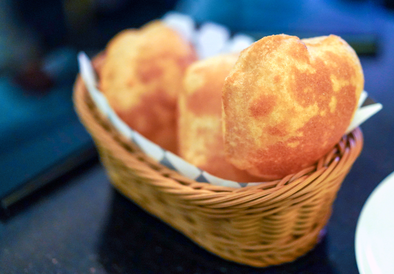 We start with golden, gluten-free patties, their deep-fried crunch concealing a divinely sticky mash of sago, potatoes and spices (RM15 for four pieces of this vada, a light, appetite-whetting snack that Natasha calls her all-time favourite), and tandoor-cooked snake gourd stuffed with crushed peanuts and crisp vegetables like cauliflower (RM30 for five pieces). Bread baskets sit on the side, awaiting sauces - puffy-fluffy puri, unleavened with roasted semolina, alongside sorghum slices with a dense, firmly rustic bite, created with no eggs, baking powder or binding agents.
