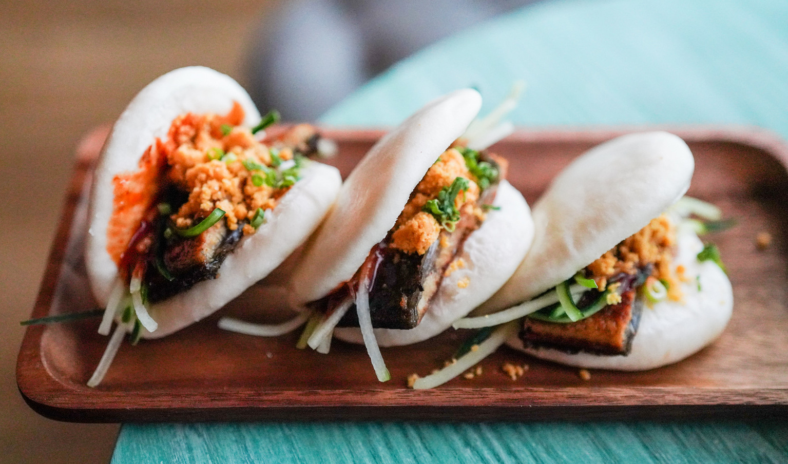 The drunken wontons offer a crisp bite as well but prove more dense than juicy in their stuffing of prawns and minced chicken marinated with rice wine for a subtly aromatic uplift (RM22); a better bet are the unagi baos, packed with warm, tender eel that conveys both spicy and saline notes, the latter thanks to a salted egg yolk crumble (RM32).