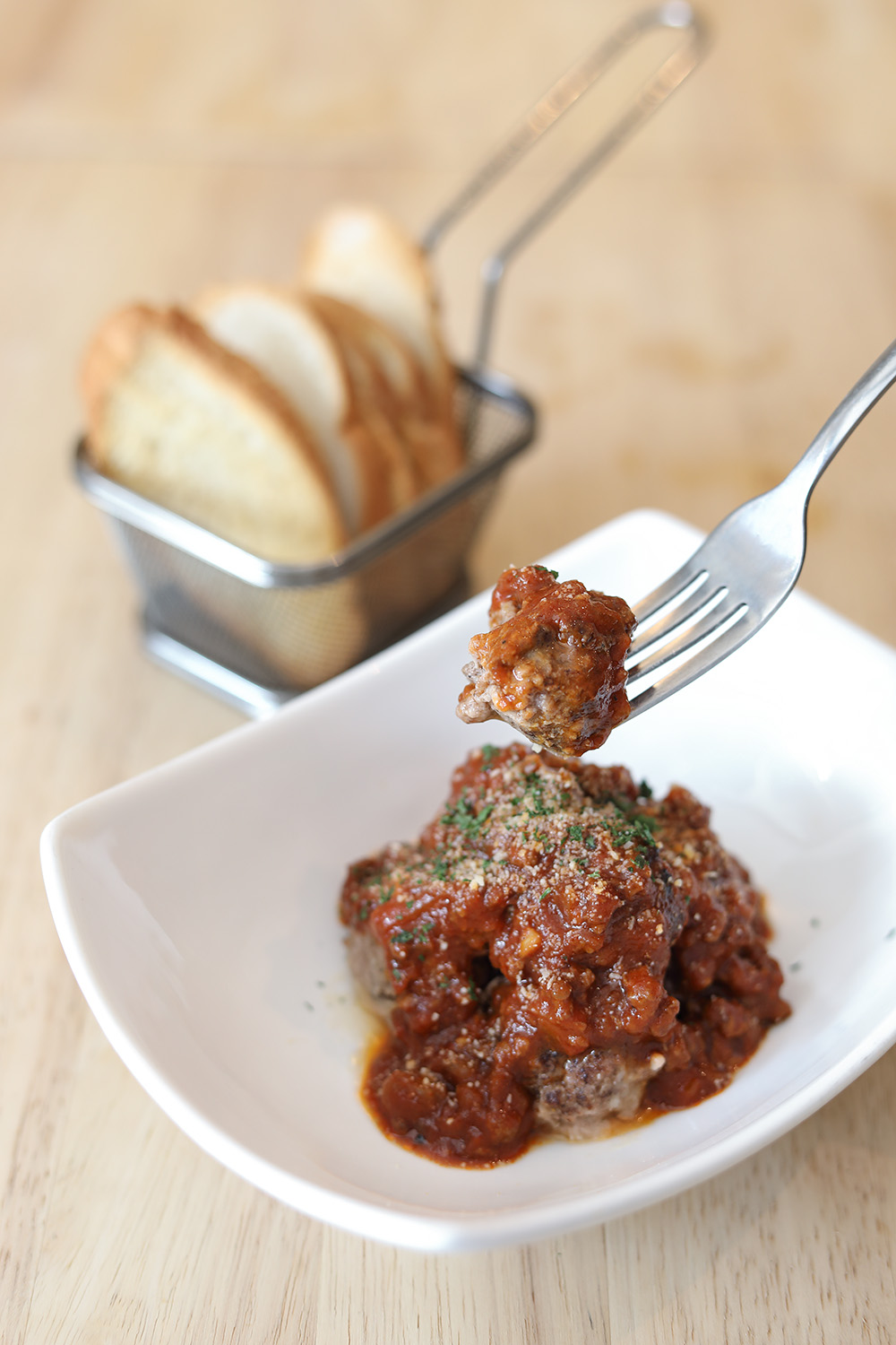 Meaty morsels include the crackly-skinned chicken wings, marinated for 24 hours with fresh milk and garlic, deep-fried and delivered to your table with taru-taru sauce (RM15) and the chunky meatballs, saturated with a textured tomato-based sauce, partnered with baguette slices (RM20).