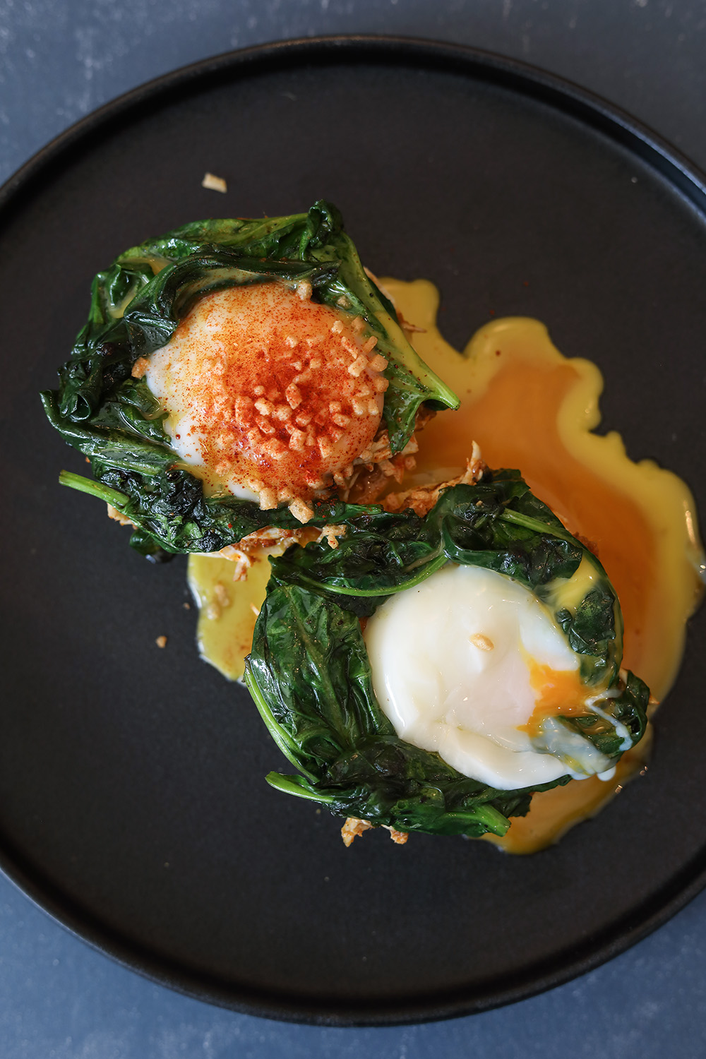 The FB Eggs Benedict is a medley of border-hopping inspirations, crowned with onsen tamago instead of the typical poached eggs, over English muffins with not only spinach and hollandaise sauce but more of the chef's family's Perak-style chicken rendang for a spicy kick (RM20).