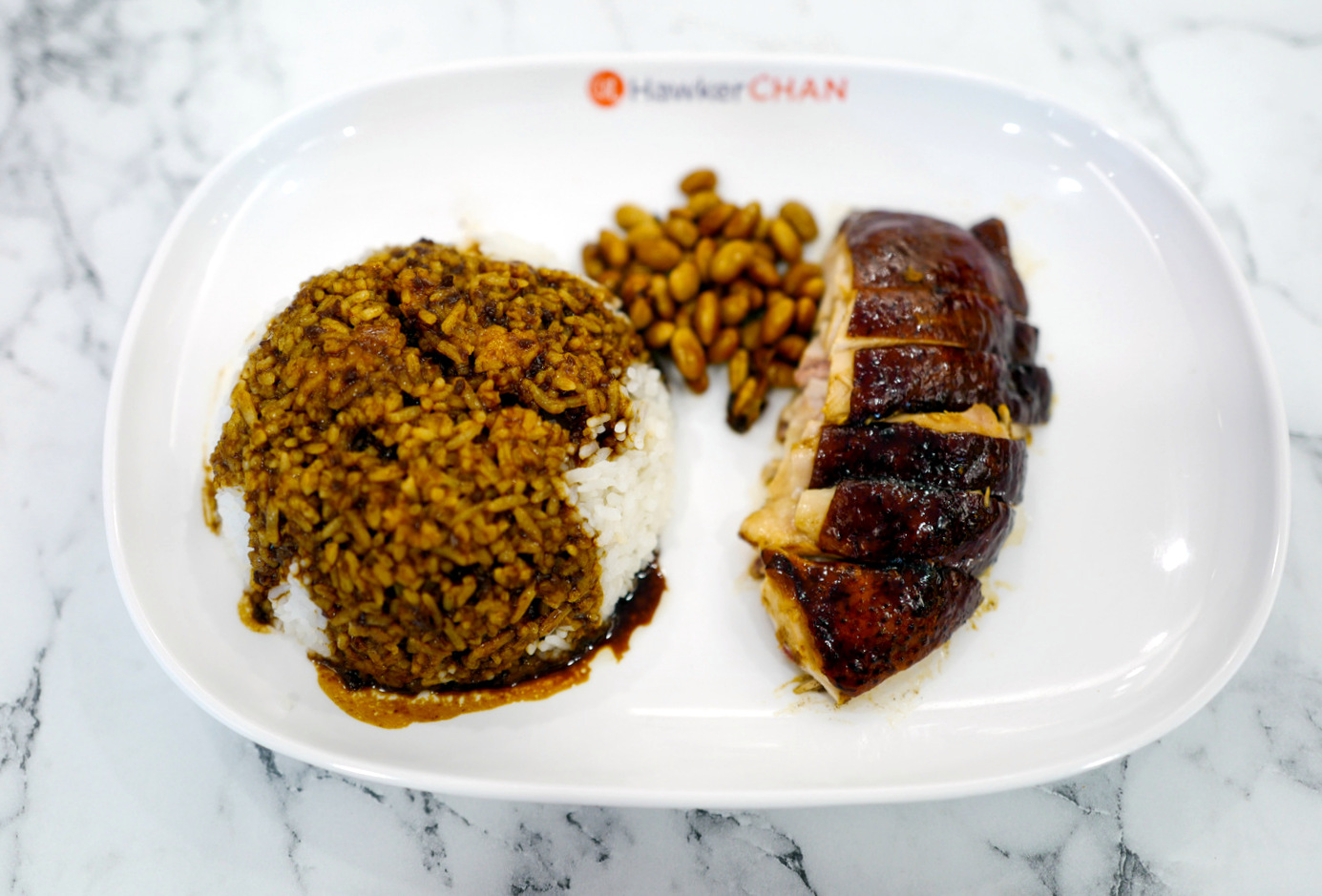 Marinated with a soy sauce blend with a secret balance of ingredients, the roast chicken is sweet-savoury without being overpoweringly so, tender and smooth-textured throughout, with the meat sourced from a carefully chosen poultry farm.