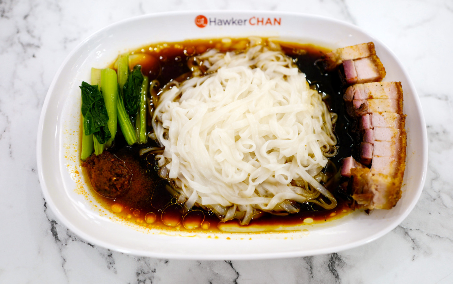 The chicken can be ordered not only with rice but with either egg noodles or hor fun, as is the case for Hawker Chan's other protein specialities, including pork ribs, char siew and roasted pork. The pork meets the mark, with the first two proving well-caramelised and the siu yok being lean and fleshy.