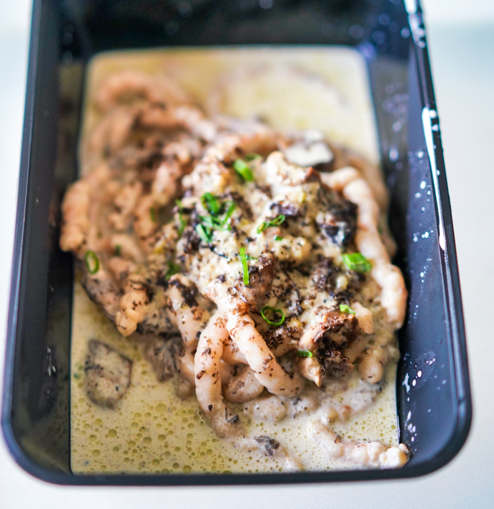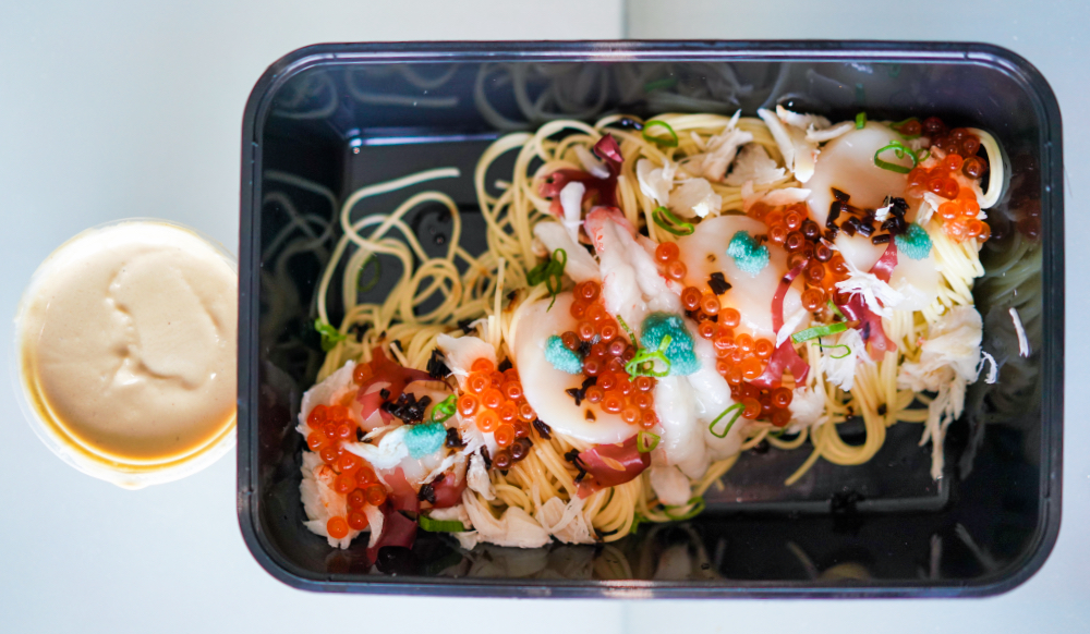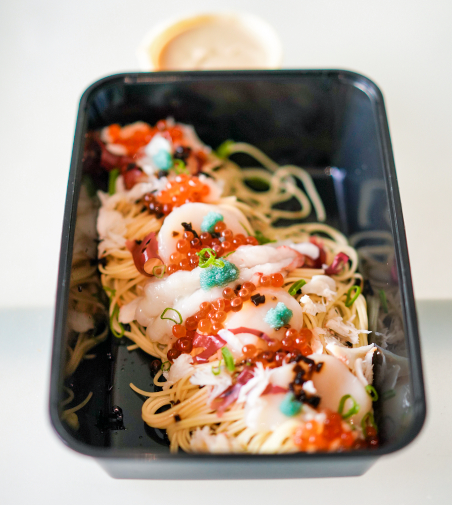 Our top hit is the Omakase Cold Capellini, a coupling of smooth, firm pasta with seafood that's pure and pristinely delicate, including Hokkaido scallops, botan ebi, crab meat and ikura, rounded out aromatically with truffle ponzu and seafood dashi. It tastes like a trip to the seaside, in the comfort of home.