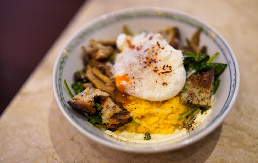 If creamy comfort is what you crave for your first meal of the day, order the fresh corn grits, a lightly sweet porridge served soft and warm with poached egg, pan-fried mushrooms and pickled shallots (RM22).