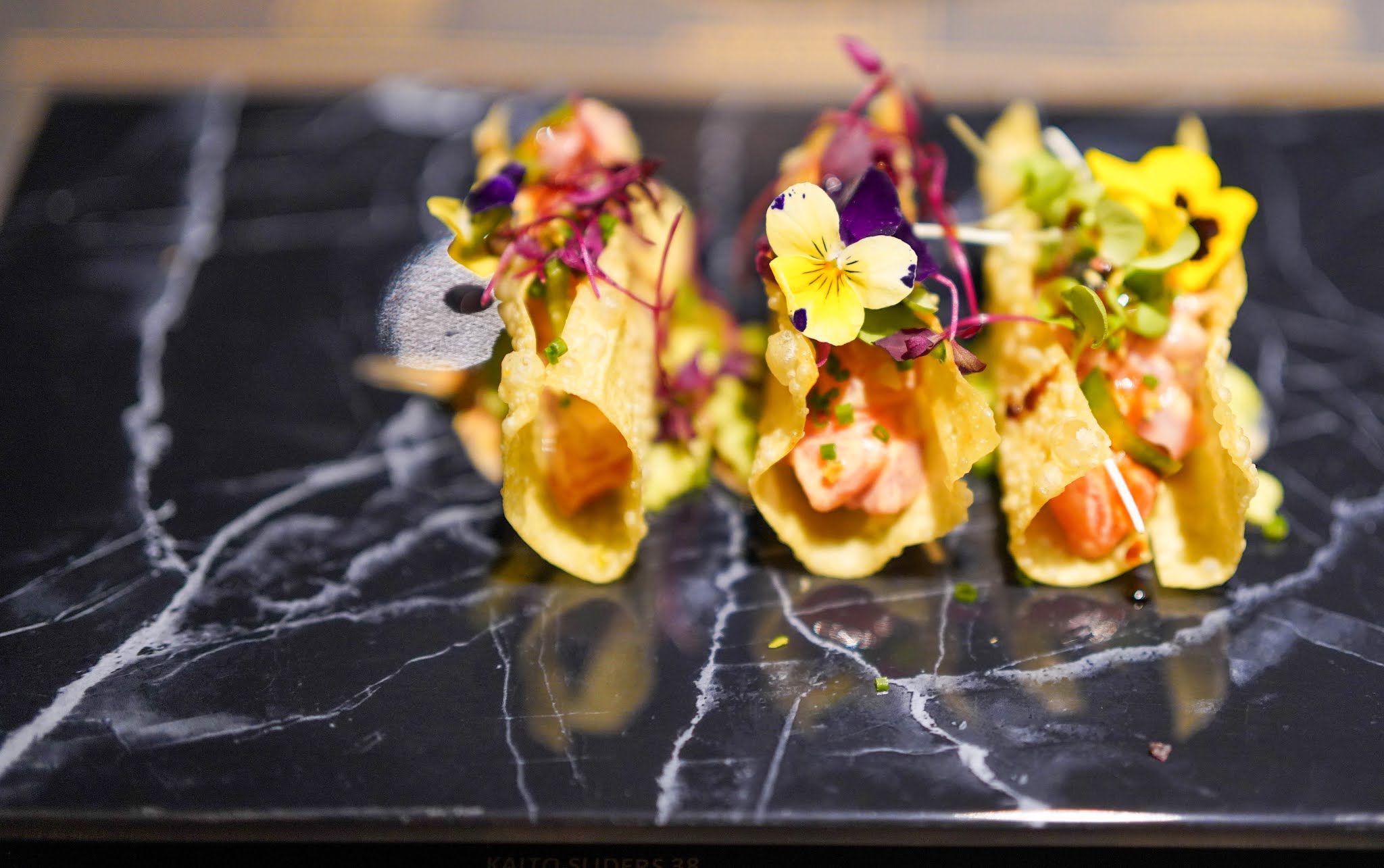 Kaito's modern, borderless take on Japanese cuisine is packed with playful panache, spanning Gyu Tan Gyoza, filled with five-hour braised ox tongue, foie gras and scallions in ponzu (RM35), to Sashimi Tacos, crunchy-shelled and stuffed with salmon, roe and edible flowers on guacamole (RM38).