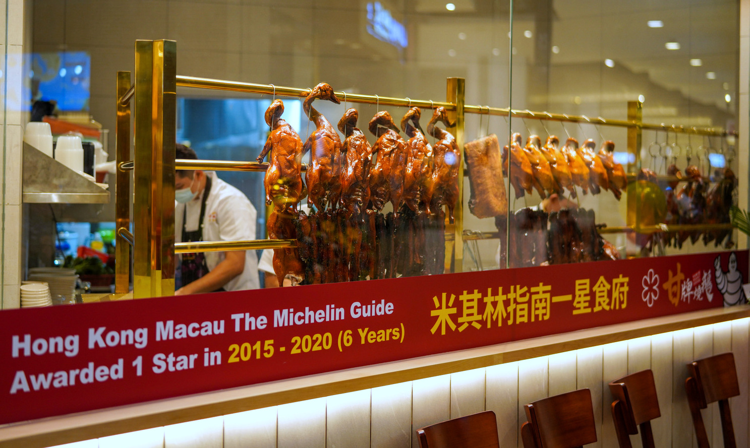 Kam's Roast banks on the Michelin star that its Wan Chai original has held since 2015, with the Michelin Man mascot, Bibendum, prominently assigned outside the Pavilion outlet. That cachet is both its boon (this'll be one of Pavilion's most popular restaurants for weeks) and bane (some patrons will predictably sneer that it's overrated and overpriced).