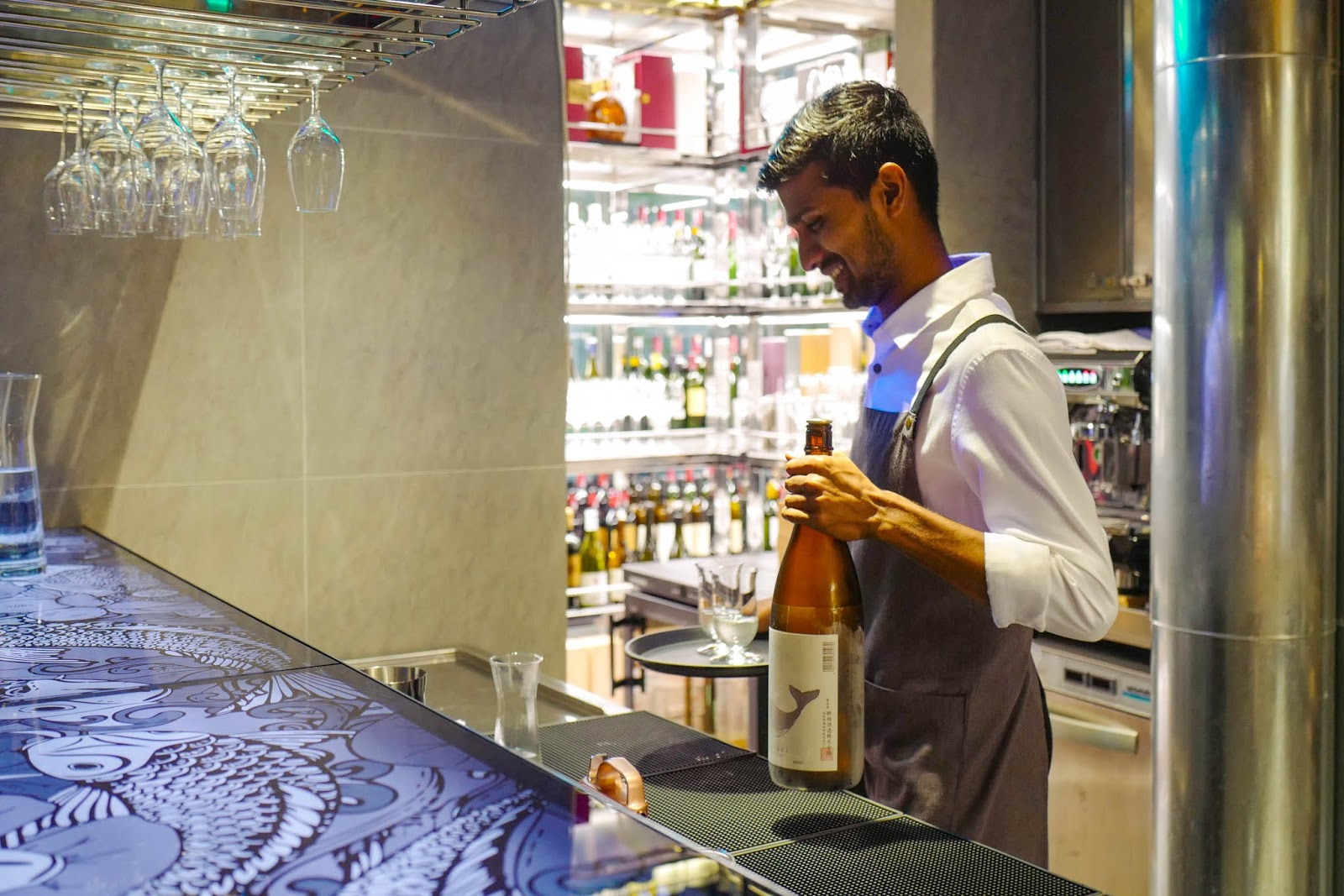To begin the evening, a reviving Kokuryu Kuzuryu Ippin that benefits from its origin of Fukui's 'soft' water (RM60 per 180-ml carafe), followed by a dry, cleanly intense Suigei Tokubetsu Junmai from Kochi for heavier dishes (RM55 per carafe; love the 'Drunken Whale' label for this bottle), and perhaps a full-bodied, fragrantly perfumed Tatenokawa Junmai Daiginjo from Yamagata to stand up to some seafood (RM70 per carafe).