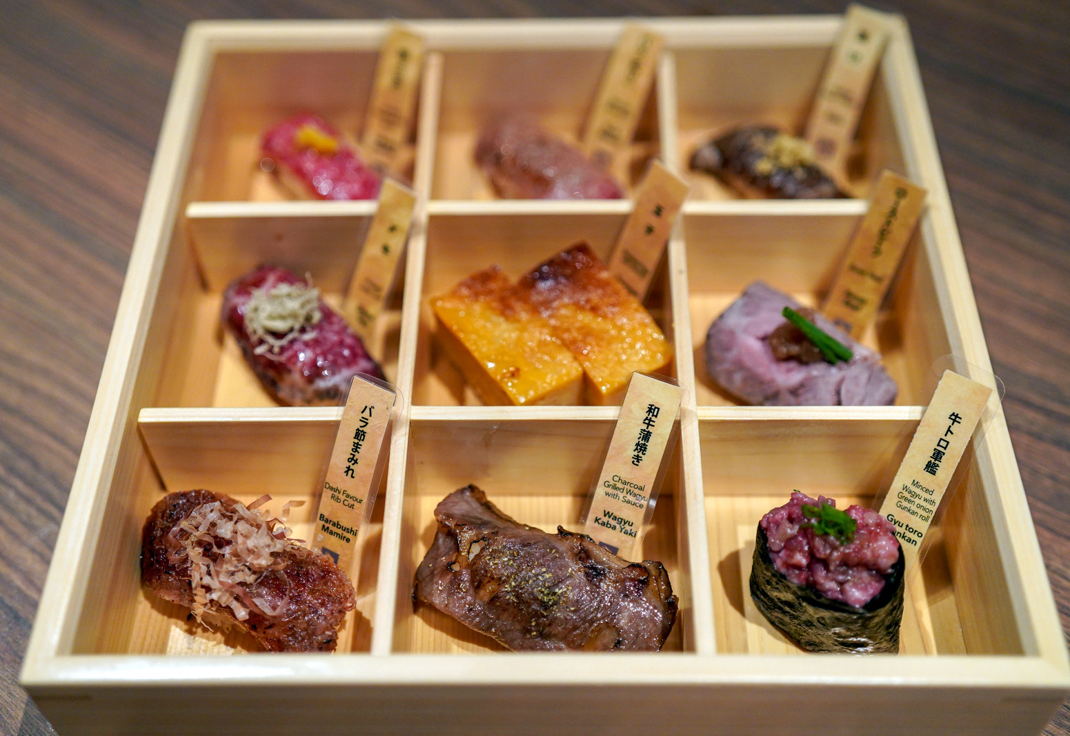 Kin Gyu's range of wagyu sushi is remarkable, encompassing nearly 20 types, some pickled with a house-made sweet vinegar sauce, others oven-roasted or charcoal-grilled, a few served meltingly raw, spotlighting different cuts such as the rib and tongue. Most of the sushi is priced between RM10-RM15; customers can also order a box of eight selected by the restaurant to represent what's best for the evening (RM80). A smorgasbord of succulence for wagyu worshippers.