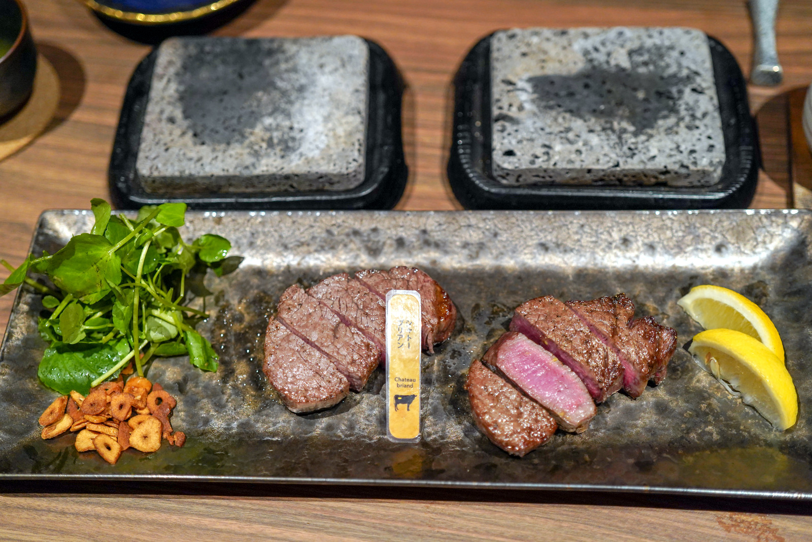 Steaks are another spectacular centrepiece: Sold by weight, customers have a choice of cuts like the coveted chateaubriand, toweringly tender, with limited portions sold at market price (other options like premium sirloins and rib eyes start at RM1.70 per gram). The meat is sliced and weighed beside your table, then partially cooked in the kitchen before being served to you with sizzling lava stones from Mount Fuji to cook your beef to your preferred degree of doneness.