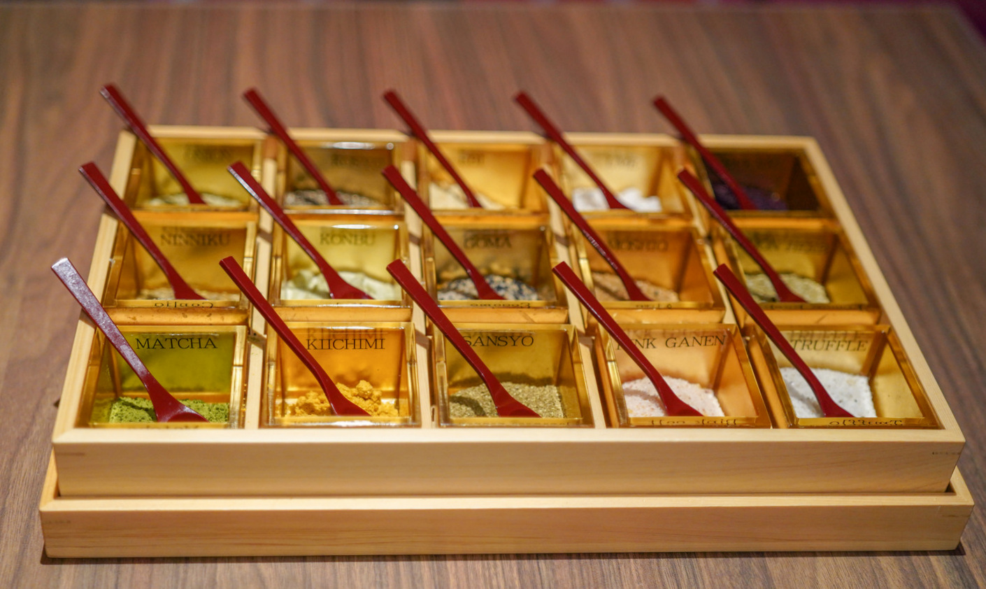 This is an exquisitely sumptuous experience for steak lovers - each customer can even choose three of Kin Gyu's own salts (in flavours like truffle, pink, Japanese pepper, yellow pepper, matcha, lemon herb, algae, sesame, kelp, garlic, red perilla, plum, shrimp powder or onion) and two sauces (such as teriyaki, grated onion, or grated daikon with ponzu) to complement the beef.