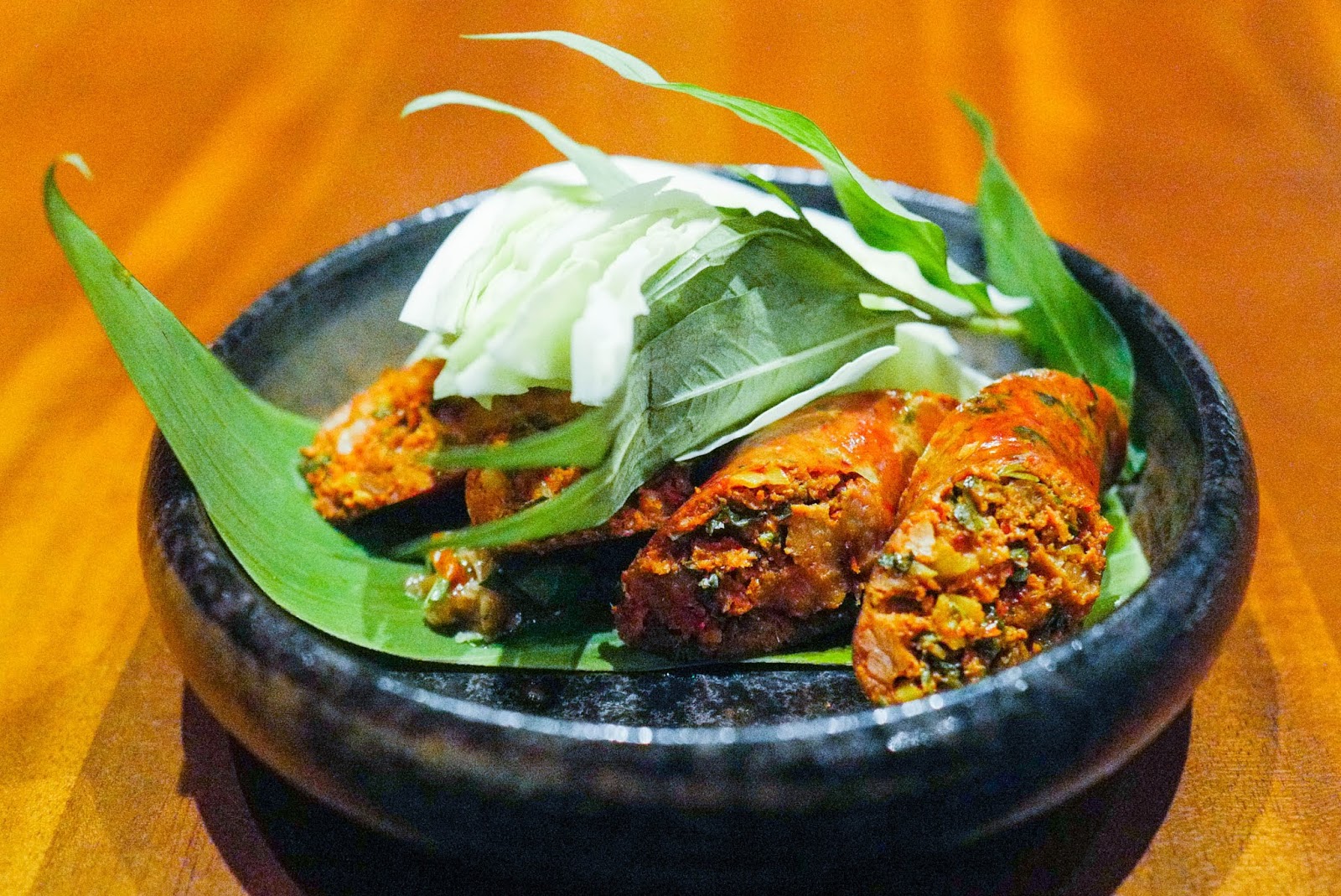 Krung Thep's competence with produce stretches from sea to land - seasonal oysters, currently U.S. Pacific, come with house-made chilli jam and fried shallots for an unmistakably spiced-up Southeast Asian preparation of molluscs (RM45 for three), while northern Thai-inflected lamb sausages, with a reassuringly genuine-meat coarseness, are smoked in-house, cushioned with nam phrik num chilli condiment for a balancing spark of zest (RM16). The harvest of farms is also revered: Luscious smoked Thai aubergines are bolstered by a fish sauce dressing, prawn floss and lime, plus an egg for extra exuberance, fully conveying the culinary-alchemy interplay of sweet-sour-spicy-salty dynamics that makes Thai cooking so beloved (RM24).