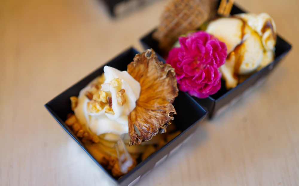 With each serving comes a cheeky cross between waffle cones and fortune cookies, with a sometimes-cryptic, always-cheerful message hidden inside. The Licky Chan experience is a joyous balm in these times.