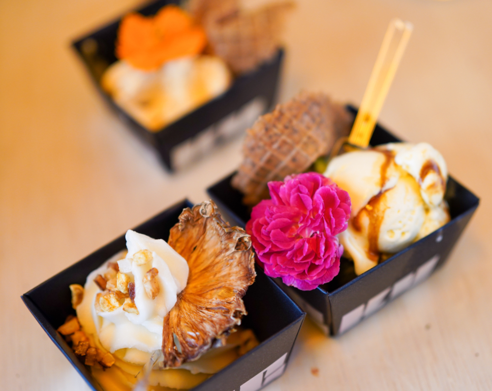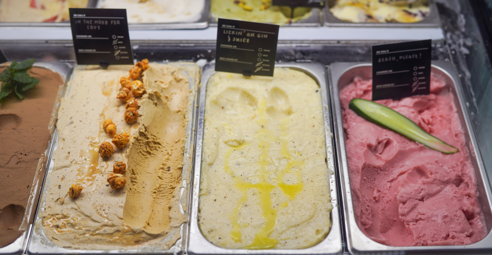 With more than 20 flavours, there's something for everyone. We found ourselves loving the combinations with boozy subtleties - the Rum Rhapsody of Bacardi with tonka beans and burnt butter; the Plantation Three Star Rum with cold-brewed Ethiopian coffee, coconut and cacao nibs; the Bombay Sapphire Gin with tonic, calamansi and olive oil; the Icelandic-style, Malaysian-made, yogurt-like skyr with peach, elderflower and gin; the Sauvignon Blanc with pear and lotus paste; the sake and wasabi with white chocolate and strawberries.