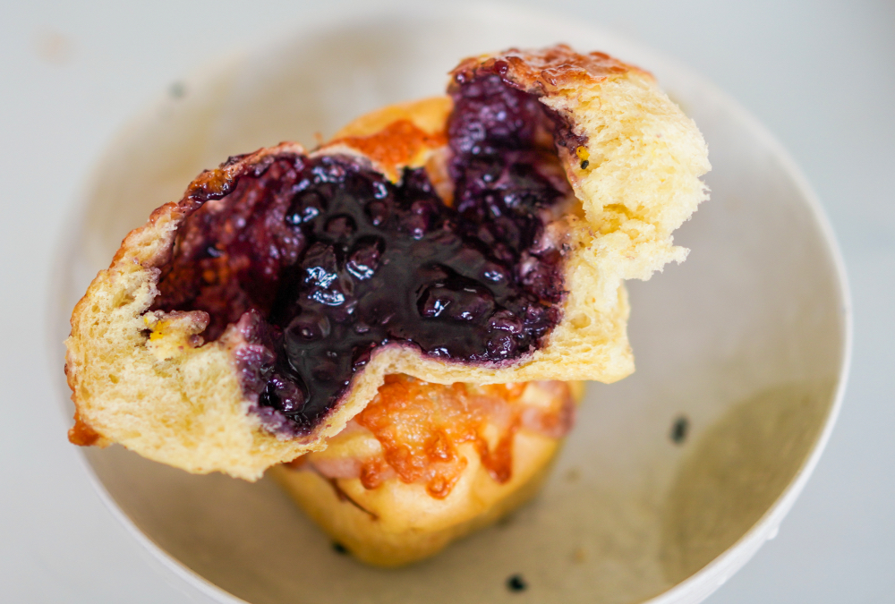 Our best bet of the dessert buns is the Belgian Dark Chocolate, which will have you licking melted chocolate off your fingers. The Japanese Raisin Matcha bun seeks to capitalise on the city's current green-tea cafe craze, while the Blueberry Cheese bun is certainly a jam.