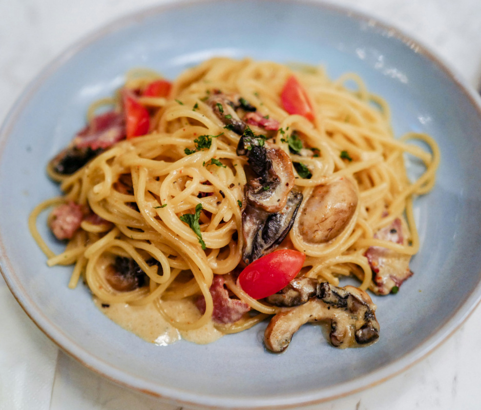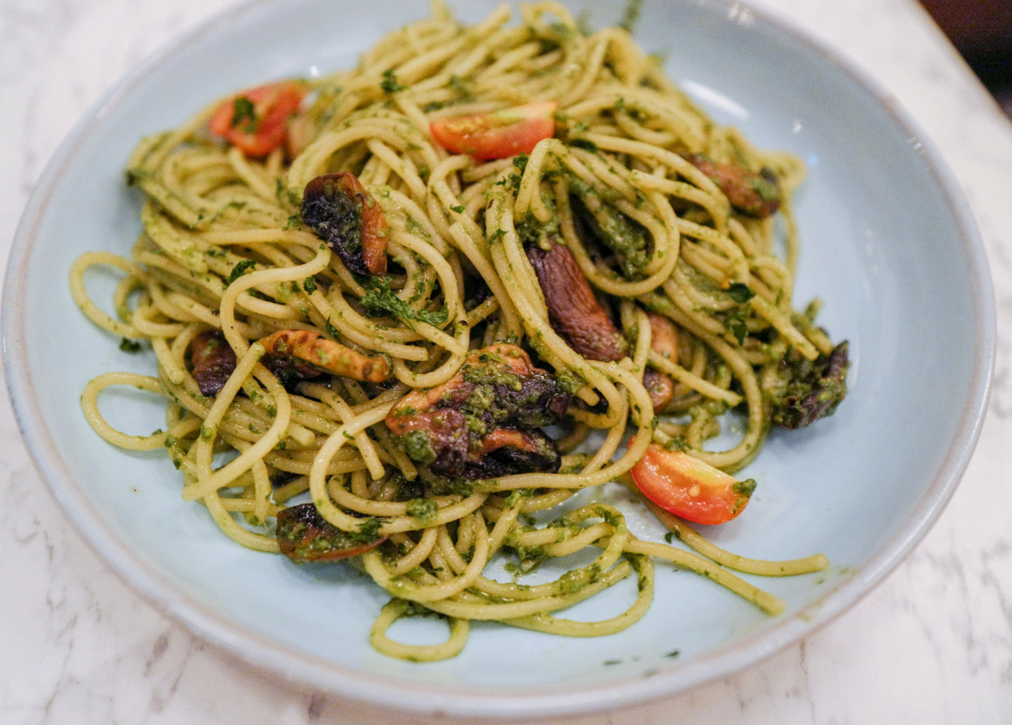 Pastas and pizzas secure subtle but persuasive modulations too. Lucky Peaches cultivates several herbs right outside its interior, so it has no shortage of perennials for, say, the Asian pesto spaghetti with cilantro, kaffir lime leaves, and white button and shiitake mushrooms (RM27.90).