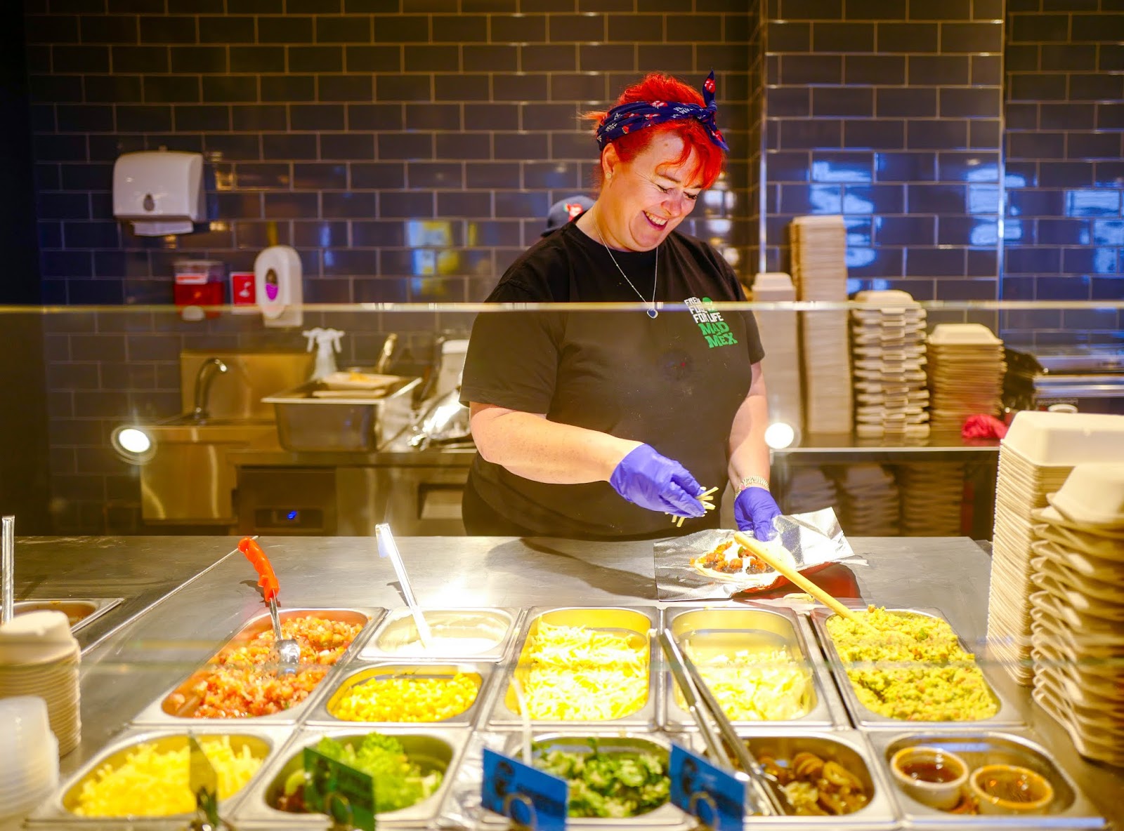 First, choose your preparation - burritos, naked burritos (without the tortilla wrap, for carb watchers), tacos (with soft flour or gluten-free soft corn tortillas), quesadillas, nachos or salads. Then pick your filling - grilled chicken, tofu, or slow-cooked beef. Finally, select a spice level for your salsa - mild with roasted tomatoes, medium with salsa verde, spicy with picante habanero.