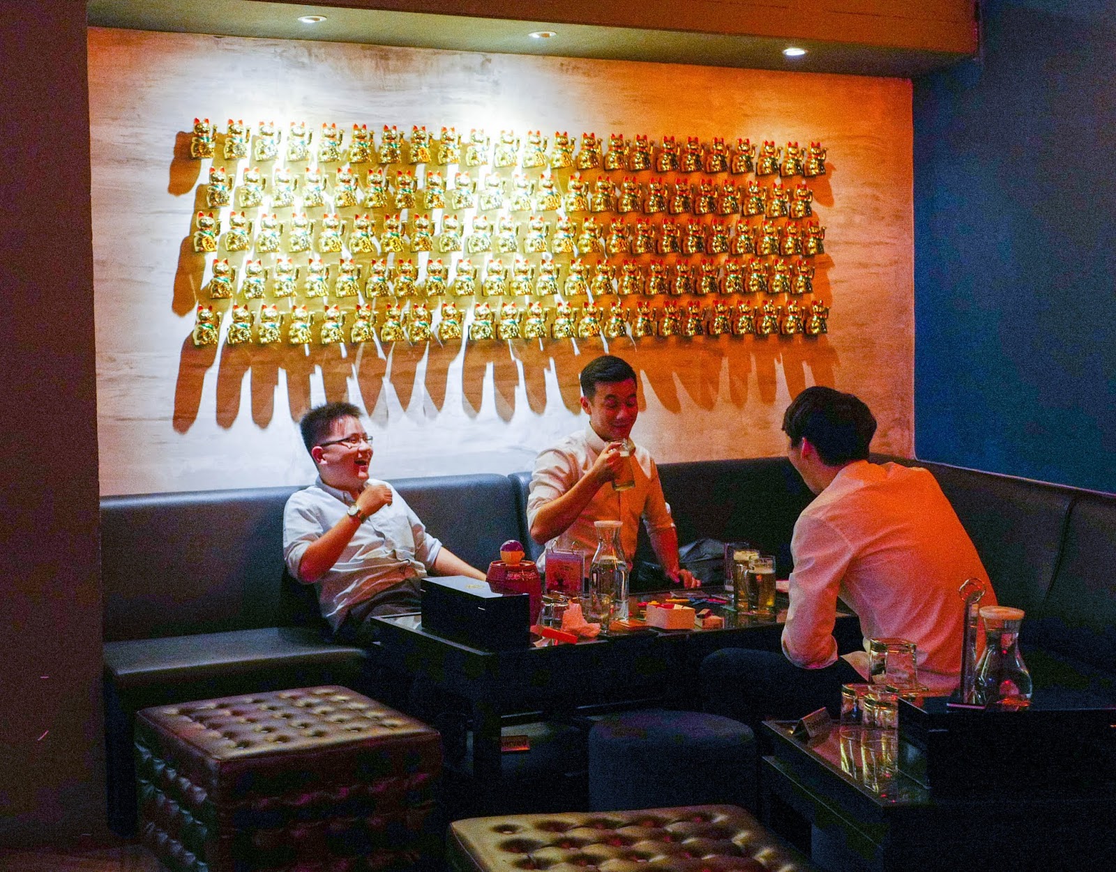 The presence of Mamacina permeates this restaurant and bar, illustrated by portraits that channel her life and passions. The curious character, rocking round-rimmed sunglasses at night, might be fictional, but her vivacious spirit is well and real here - immaculately coiffed, she may have travelled far and wide, but she always comes home, bringing back international influences like Italian artwork and French Champagne to complement her own Asian heritage, underscored by a wall strikingly filled with maneki-neko fortune cats.